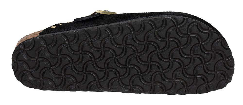 Sålen er bygget opp av fem lag materialer. Øverst, mot foten er det et lag skinn av god kvalitet, deretter følger et lag med fuktighetsabsorberende materiale, før vi har den ergonomisk korrekt oppbygde fotsengen av lateks-kork, før yttersålen er det så et stabiliserende strielag, og nederst går du mykt på en slitesterk gummisåle.