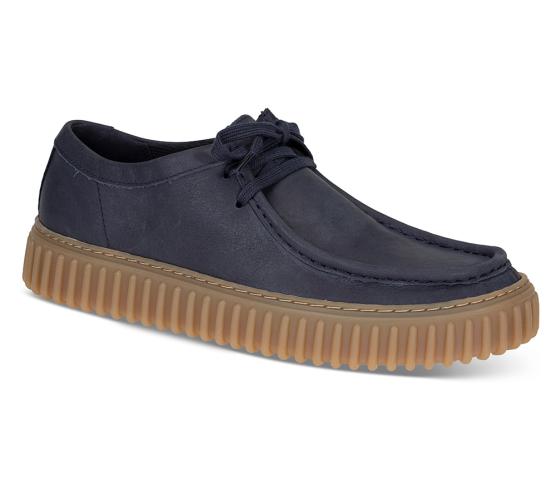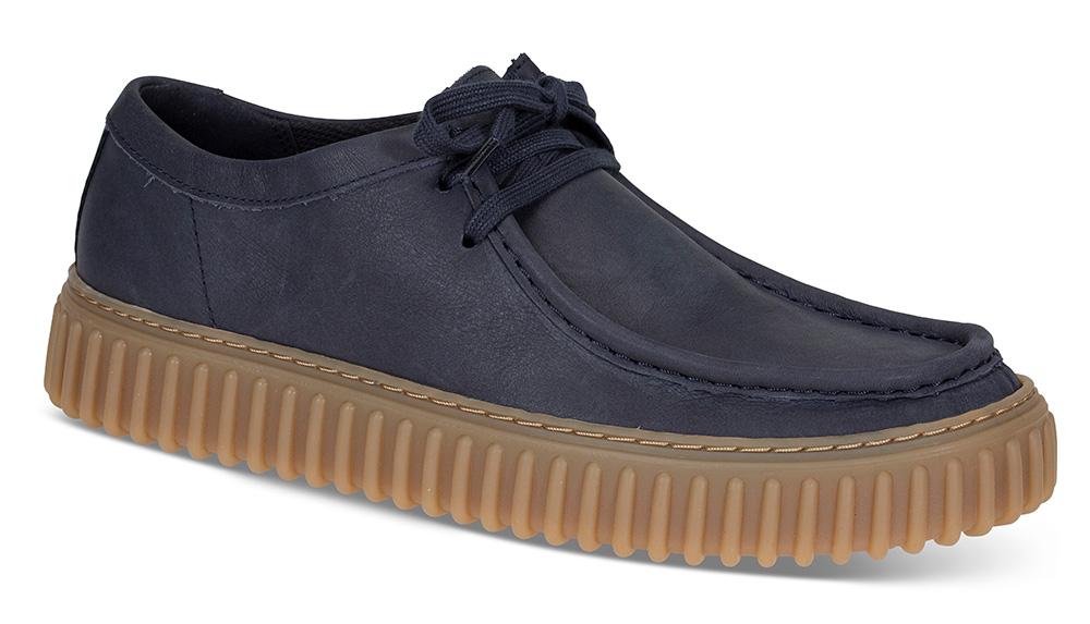 En modell fra Clarks arkiv som er blitt en ny hit! Torhill Lo var en populær modell på 90-tallet og er nå tilbake, Her med overdel i blå nubuck og en creeper-såle i gummi. Myk, pustende fotseng i skinn som er uttagbar.