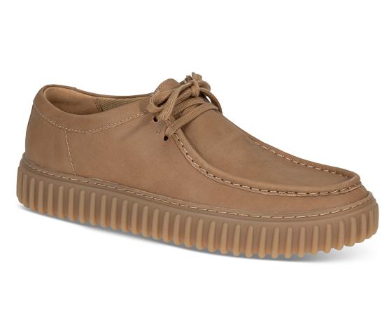 En modell fra Clarks arkiv som er blitt en ny hit! Torhill Lo var en populær modell på 90-tallet og er nå tilbake. Her med overdel i brun nubuck og en creeper-såle i gummi. Myk, pustende fotseng i skinn som er uttagbar.