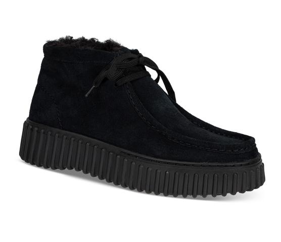 En modell fra Clarks arkiv som er blitt en ny hit! Torhill var en populær modell på 80-tallet og er nå tilbake med den klassiske overdelen i nubuck og en creeper-såle i gummi. Varianten her er fôret med fluffy fôr.