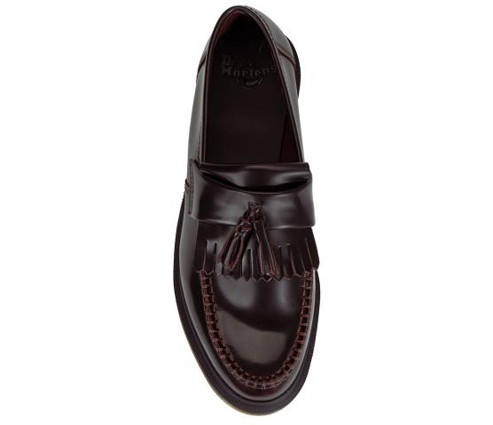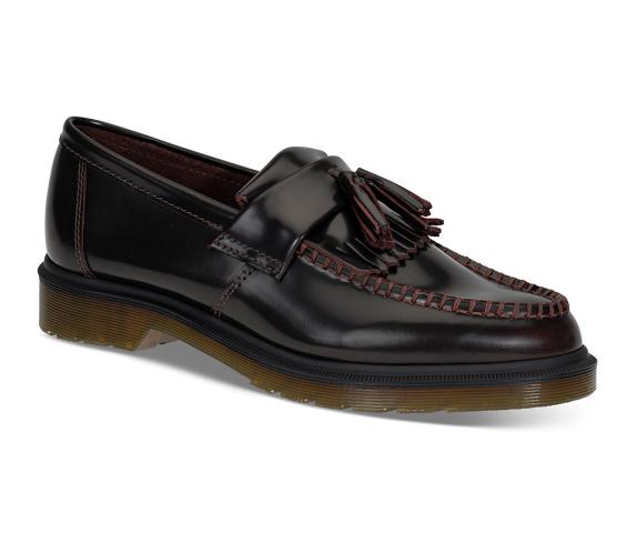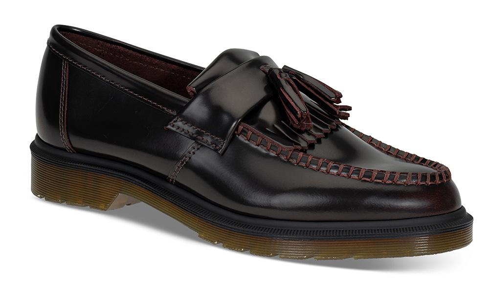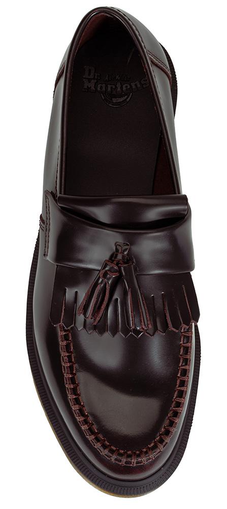 Populær pennyloafer med dusk og kraftig, klassisk Dr.Martenssåle. Adrian er helt rå! Her i et polert, burgunderrødt skinn. Dr. Martens har holdt koken i motebildet siden 1950 og er minst like hot i dag. Den solide sålen er perfekt for norske forhold. Slitesterke, komfortable og med en trendy uformell look. NB! Modellen er lav over vristen, ligger du mellom to størrelser og har litt høy vrist - vipp opp.