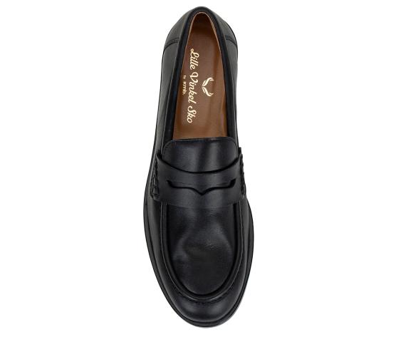 En flott loafer i sort skinn med en meget fleksibel og myk gummisåle. Skoen er også skinnfôret. Laget i samarbeid med den spanske skofabrikken KMB.