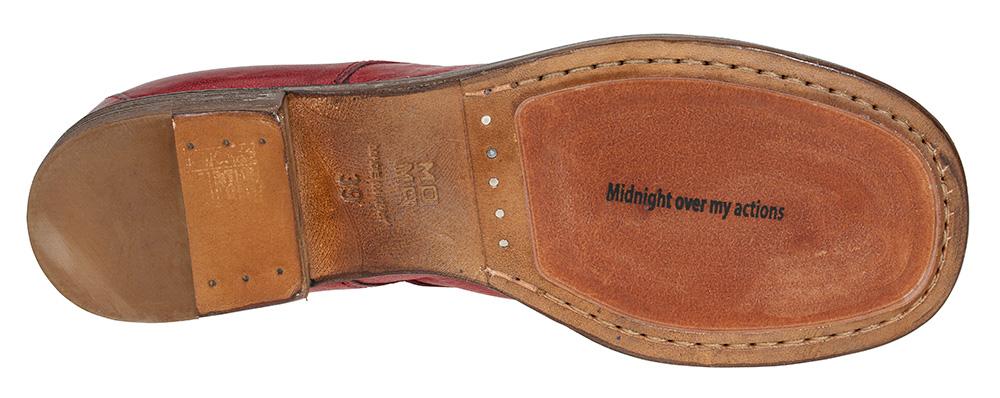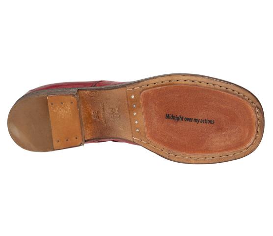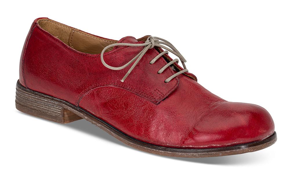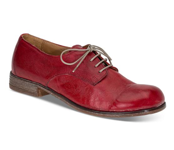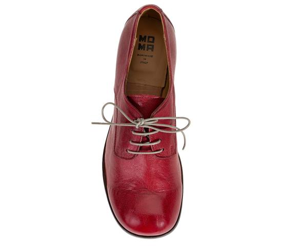 Kul snøresko med butt tupp fra italienske Moma. I rødt skinn med en matt finish for den rette vintagelooken. Gummisåle innfelt i lærsålen under, modellen er også gjennomsydd. NB! Modellen er stor i størrelsen, så om du vipper mellom to størrelser - vipp ned. Sjatteringer i det skinnet som er naturlig og vil variere fra par til par.