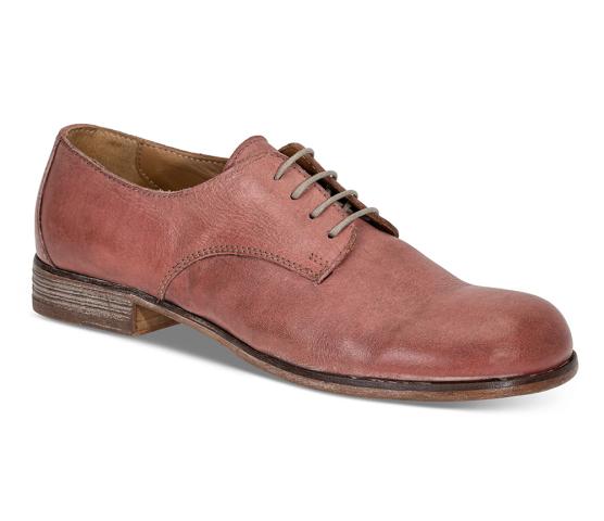 Kul snøresko med butt tupp fra italienske Moma. I gammelrosafarget skinn med en matt finish for den rette vintagelooken. Gummisåle innfelt i lærsålen under, modellen er også gjennomsydd. NB! Modellen er stor i størrelsen, så om du vipper mellom to størrelser - vipp ned. Sjatteringer i det skinnet som er naturlig og vil variere fra par til par.