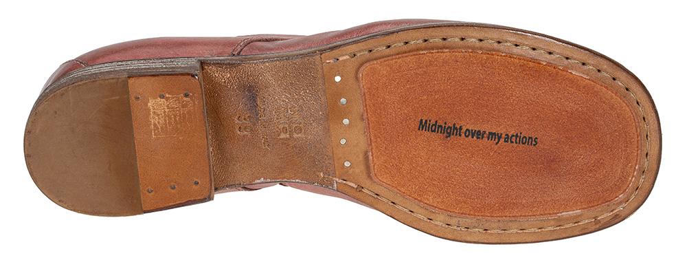 Lærsåle på området ellers der det ikke er gummi. Ikke bruk disse i vått vær. Sjatteringer i det skinnet som er naturlig og vil variere fra par til par.