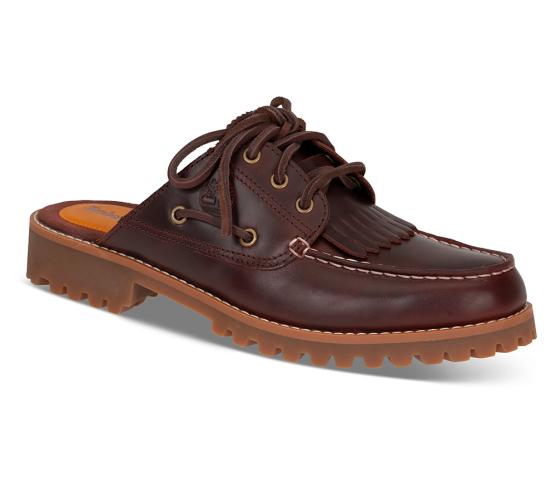 Den klassiske båtskoen her kombinert med den enkle slip-on-stilen, - og vipps en moderne versjon av en autentisk mule. Den tradisjonelle håndsydde konstruksjonen er laget med premium Timberland®-skinn for å gi god horldbarhet. Innsiden er et ReBOTL™-stofffôr laget av minst 50 % resirkulert PET-plast og en OrthoLite®-såle som hjelper føttene dine å puste og holde seg komfortable. Denne kan du bytte ut seilerskoen din med når temperaturen stiger. Kule frynser som detalj i front.