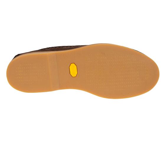 Sålen har selvfølgelig "minirillene" som gjør at den griper ekstra godt på båtdekk, men er selvfølgelig helt suveren i Bogstadveien også. Her i mykt, semsket skinn.