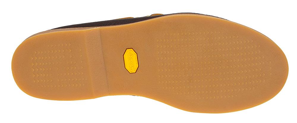 En seilersko med tykt, mykt skinn og en ekstra god gummisåle. Innvendig har den en komfortabel fotseng, og en skinnlisse som er tredd igjennom skoene og opp til de fire hullene i front. Fin avrundet skinnpløse over vristen.