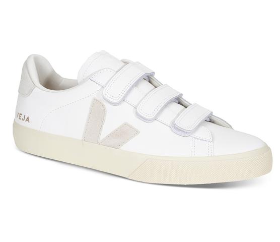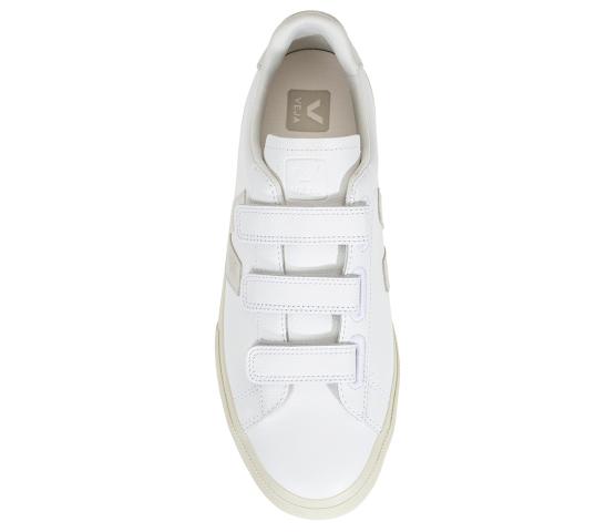 Recife er laget av økologiske og bærekraftige materialer. Overdelen er i glatt skinn, logoen av gummi og fôret av organisk bomull og resirkulert polyester.
