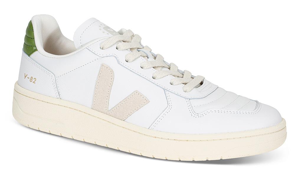 Modellen V-82 tar oss tilbake til 80-tallet med en retro-logo og et asymmetrisk design. Skinnet kommer fra det sørlige Brasil og Uruguay, og garves lokalt i verksteder som er valgt for sine strenge miljøkrav – ingen helseskadelige eller miljøfarlige stoffer brukes. Fargestoffene oppfyller gjeldende standarder og påføres med fokus på vannforbruk under garvingen. Laget i Portugal