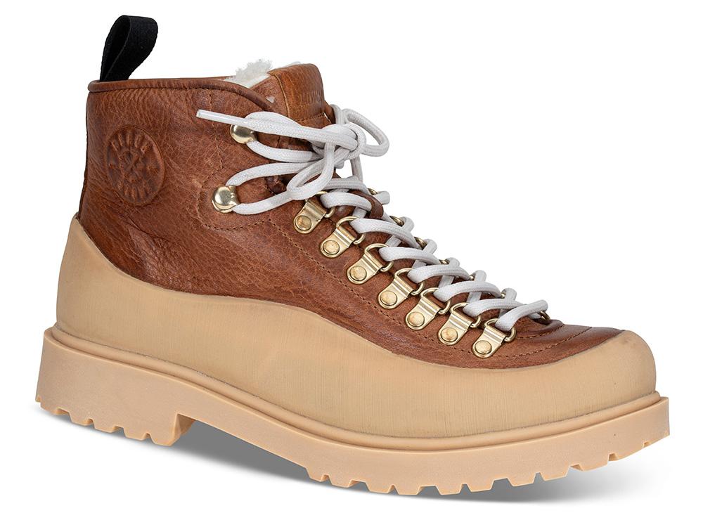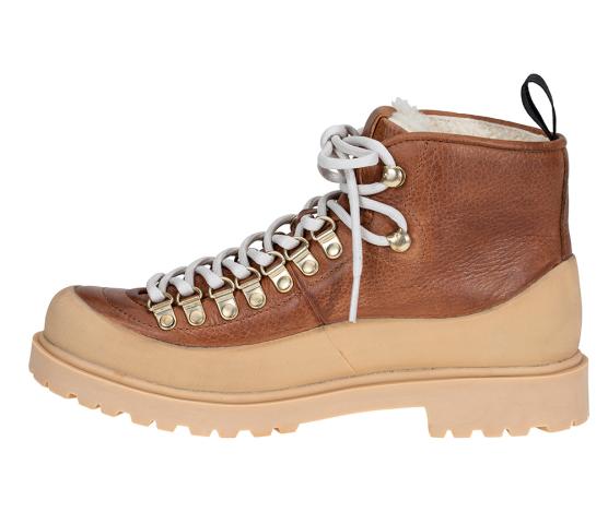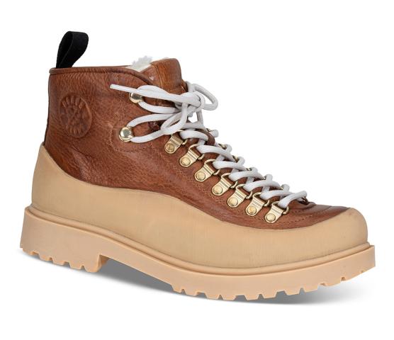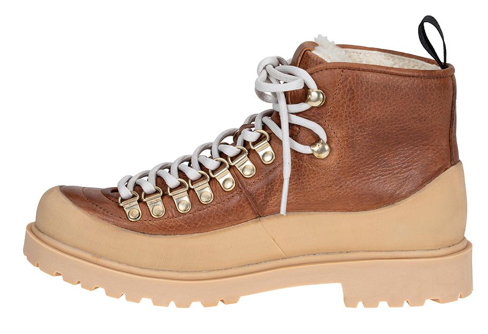 En kraftig, solid og tøff vintersko fôret med ekte saueskinn og en mønstret gummisåle som griper godt. Modellen har kraftig gummi rundt hele overdelen ned mot sålen, og tåler derfor "ruskevær".
