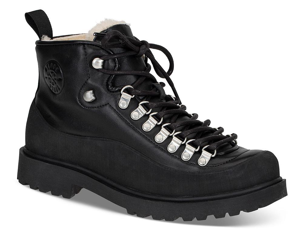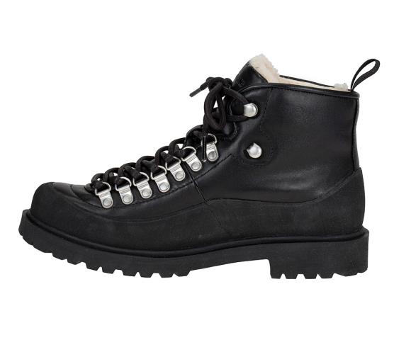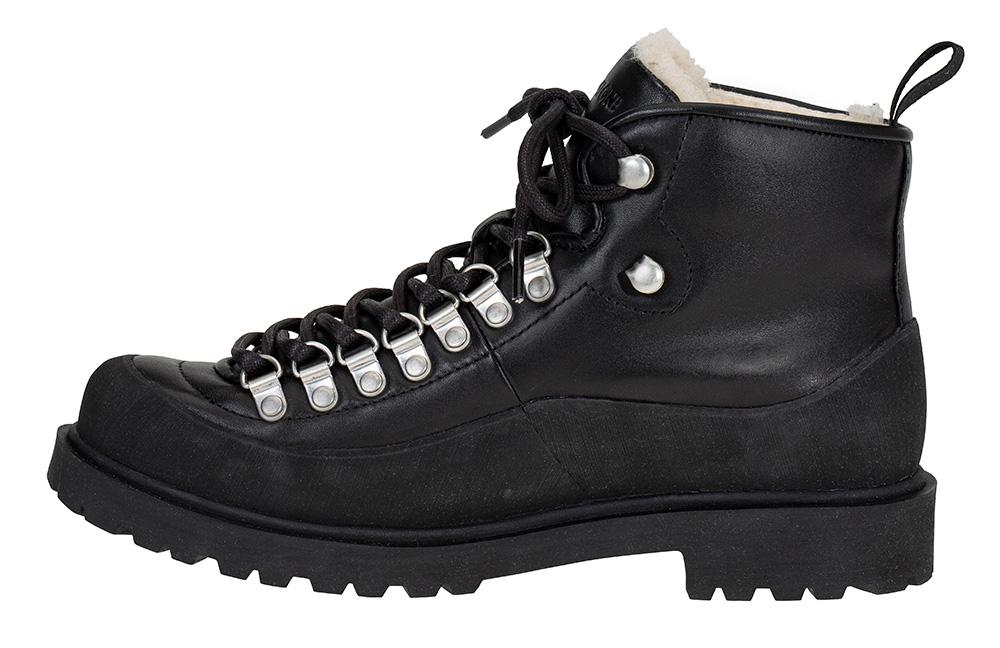 En kraftig, solid og tøff vintersko fôret med ekte saueskinn og en mønstret gummisåle som griper godt. Modellen har kraftig gummi rundt hele overdelen ned mot sålen, og tåler derfor "ruskevær".