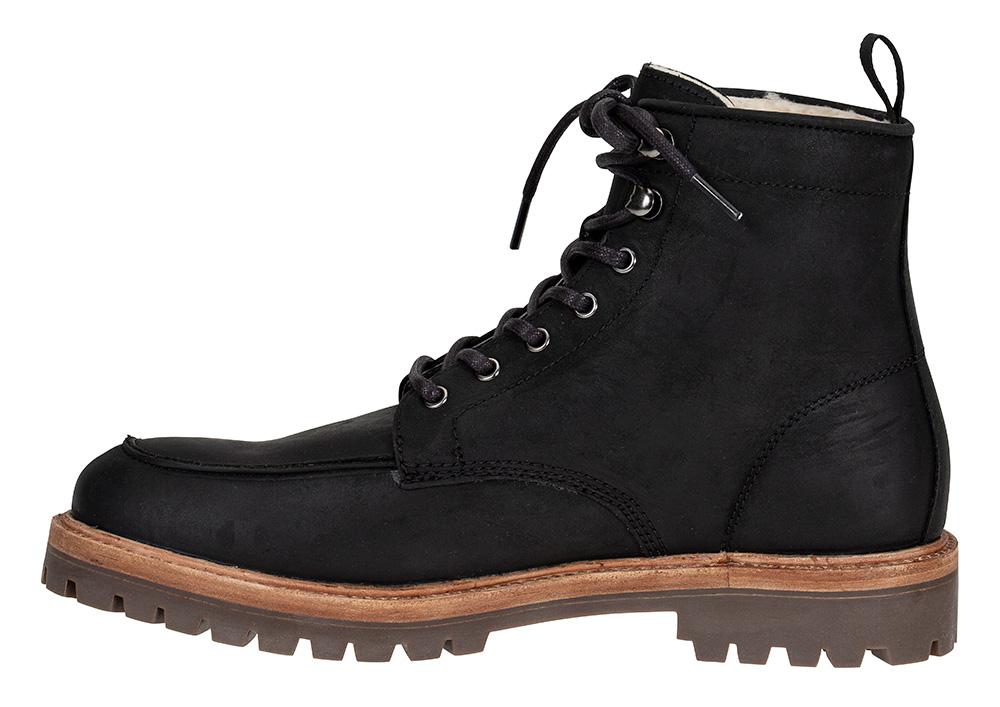 En klassisk vintersko i sort nubuckskinn og med en grov gummisåle - fra Blackstone. Selvsagt fôret med ekte saueskinn som holder deg varm på kalde dager.