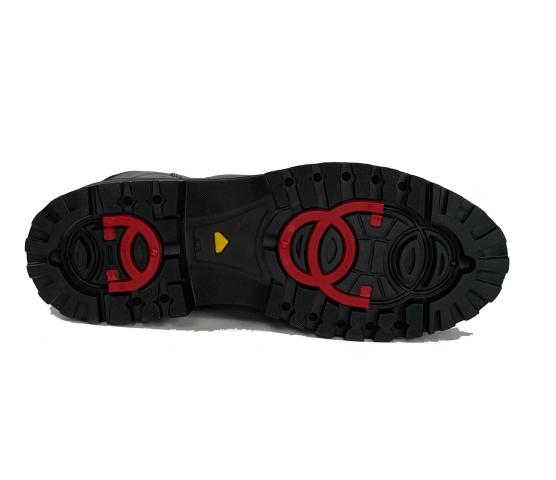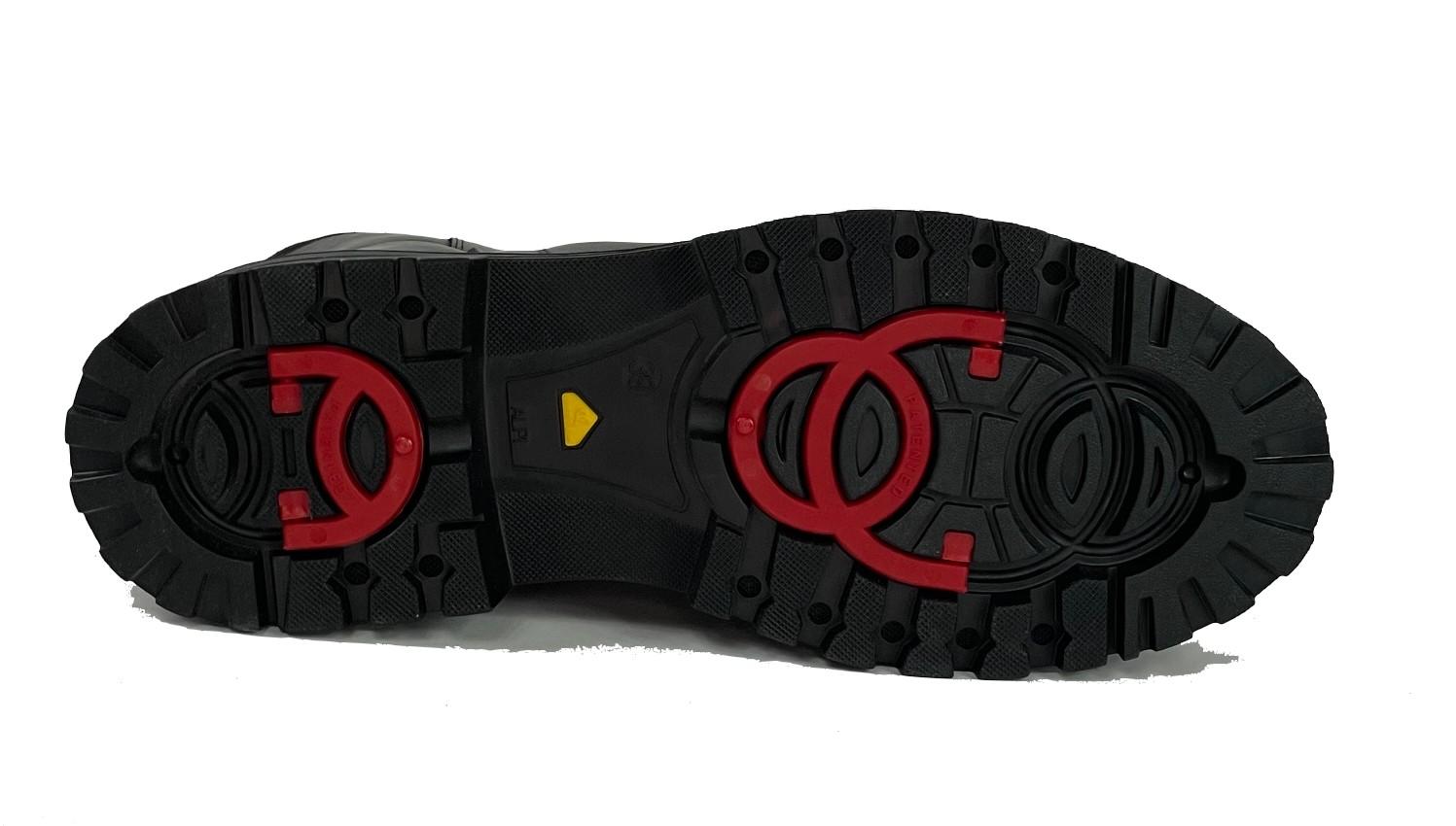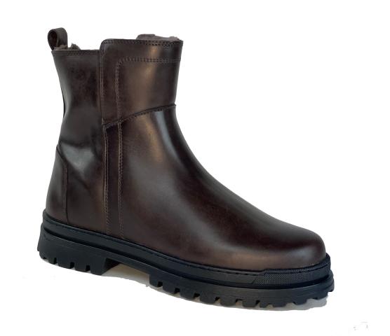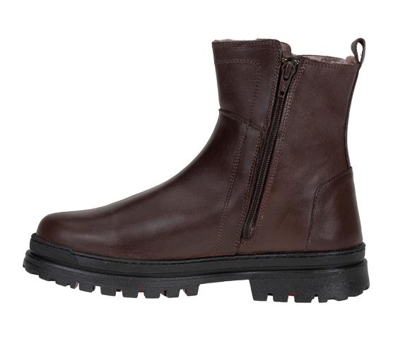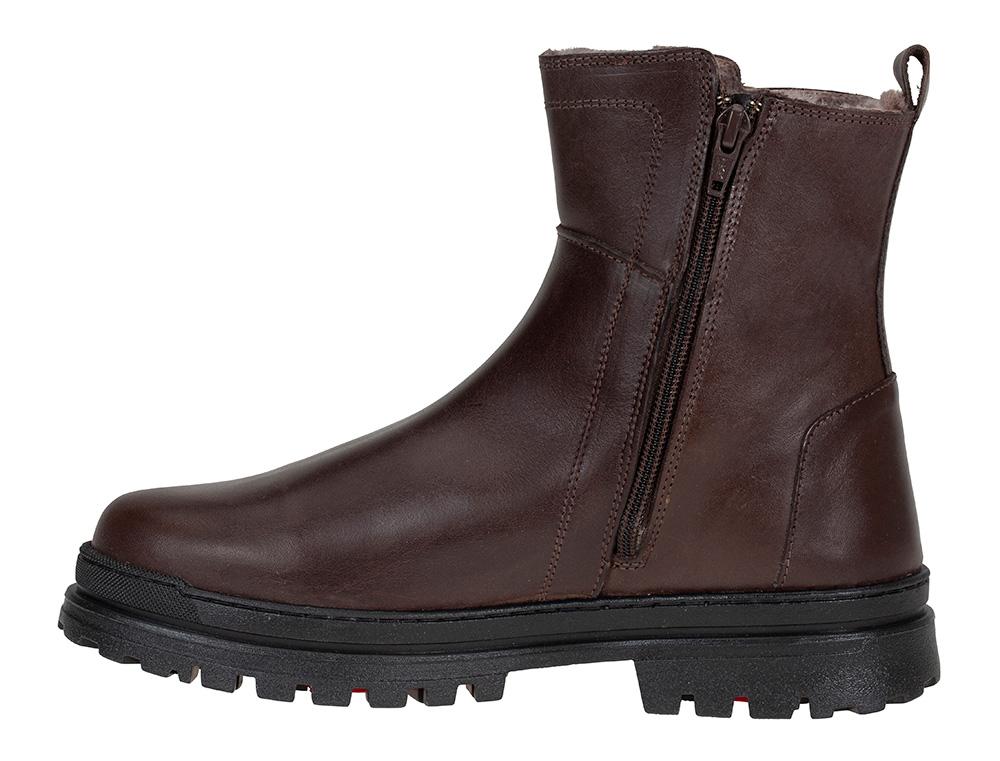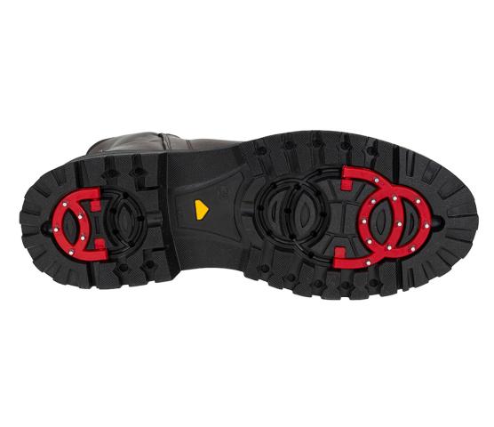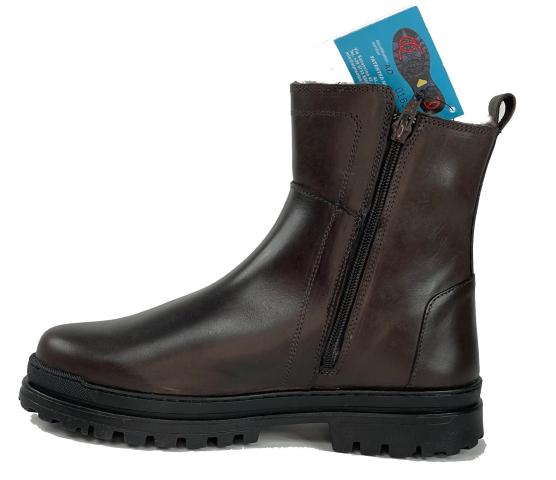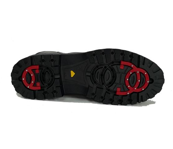 Piggsko! En skinnskolett i vannavstøtende skinn, fôret med varmt saueskinn på hele innsiden og solid påsydd såle. Modellen har en klassisk form og en stødig hæl. Skaftet er litt høyere foran enn bak. I tillegg har den utvippbare pigger under. Redskap til å vippe de ut medfølger i esken.