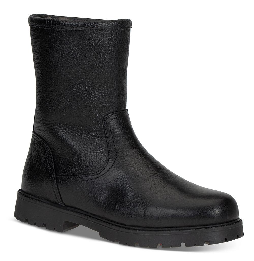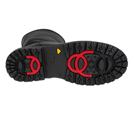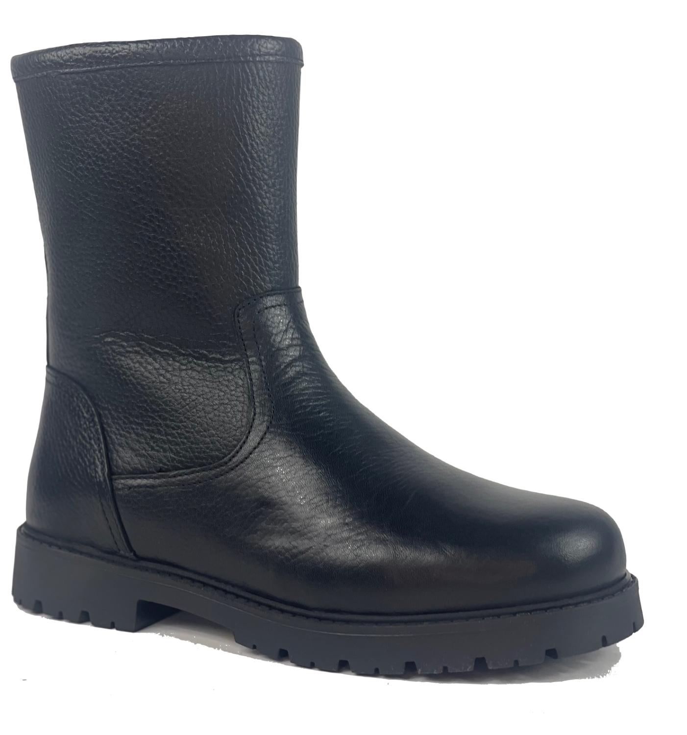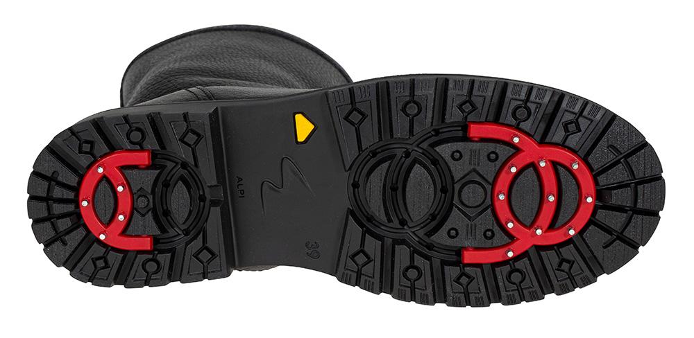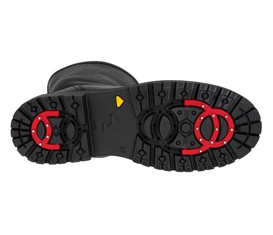Piggsko! Denne skinnskoletten er laget av vannavstøtende skinn og fôret med deilig saueskinnsfôr - perfekt til vinteren. Det unike ved denne bootsen er at den har utvippbare pigger (fra Alpi, de originale) under, som er perfekt til glatt vinterføre. "Nøkkel" til å vippe de ut medfølger i esken. De siste bildene viser sålen med piggene inn og ut.