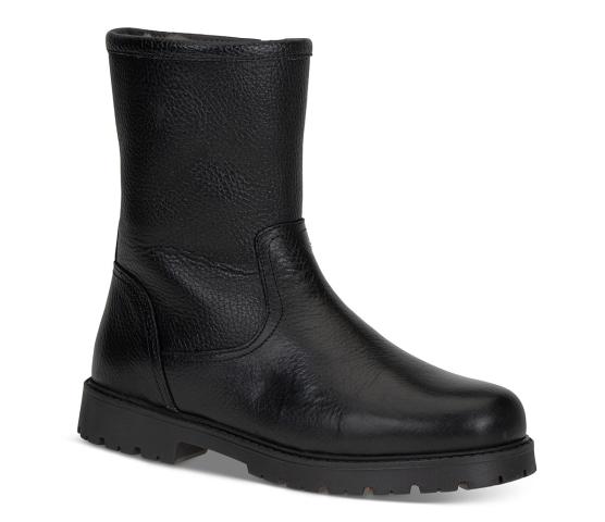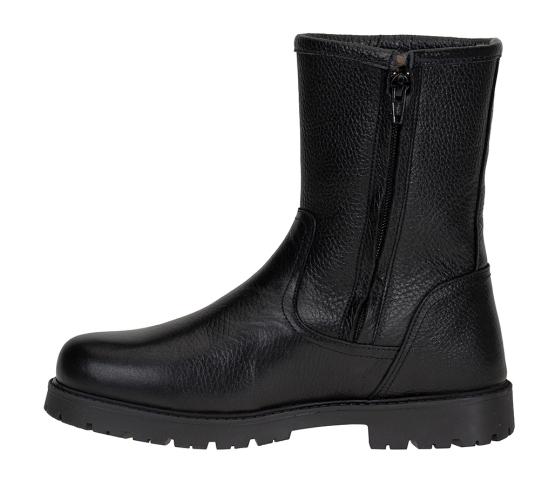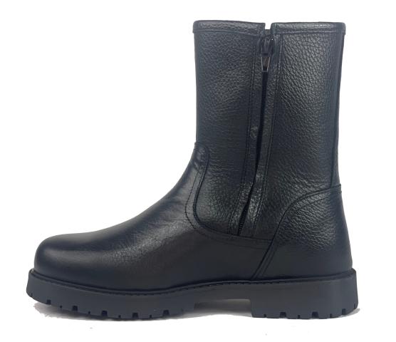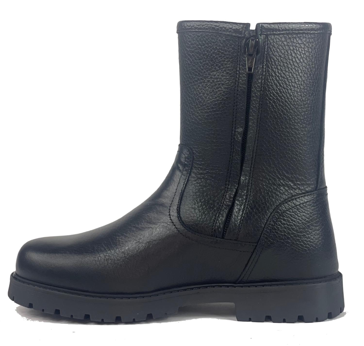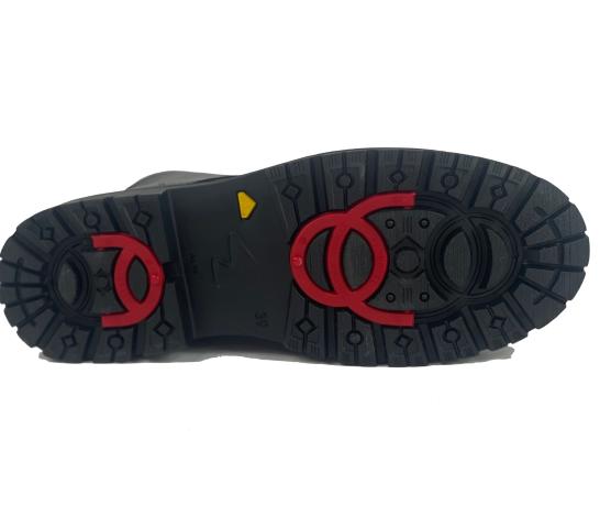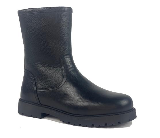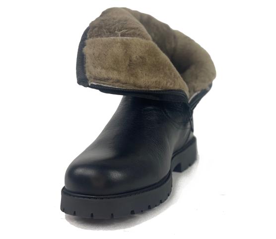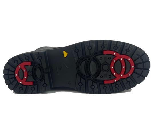 Piggsko! Denne skinnskoletten er laget av vannavstøtende skinn og fôret med deilig saueskinnsfôr - perfekt til vinteren. Det unike ved denne bootsen er at den har utvippbare pigger (fra Alpi, de originale) under, som er perfekt til glatt vinterføre. "Nøkkel" til å vippe de ut medfølger i esken. De siste bildene viser sålen med piggene inn og ut.
