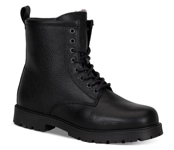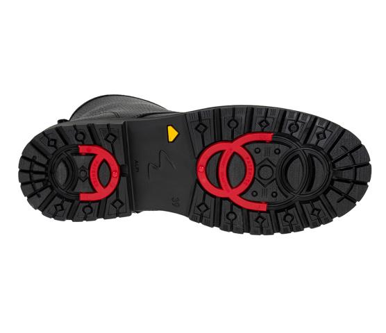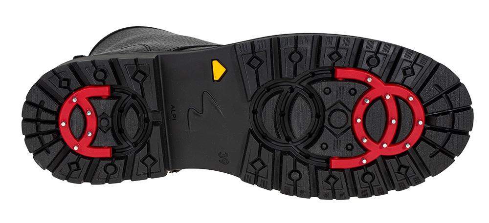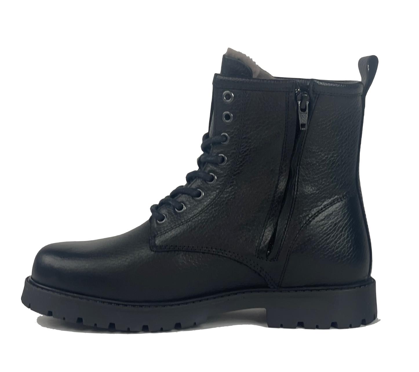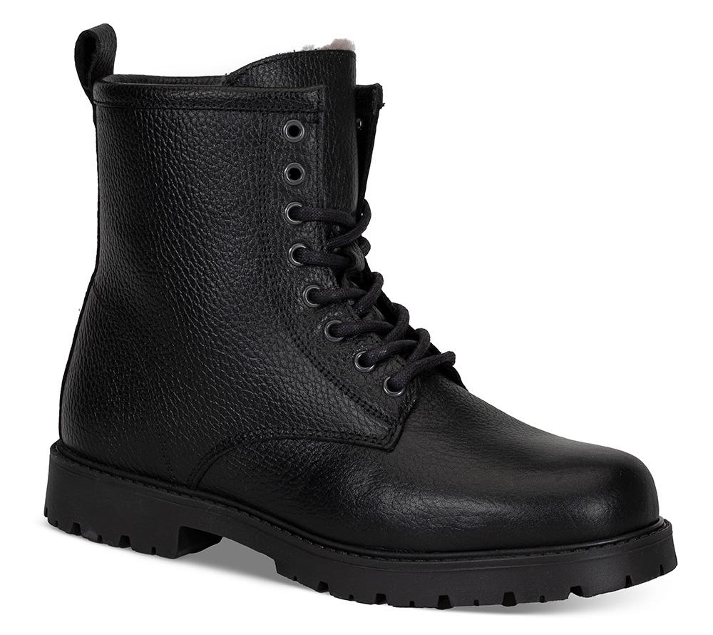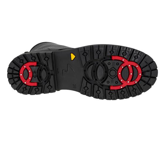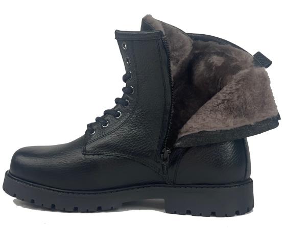 Piggsko! Denne snøreskoletten er laget av vannavstøtende skinn og fôret med deilig saueskinnsfôr - perfekt til vinteren. Det unike ved denne bootsen er at den har utvippbare pigger (fra Alpi, de originale) under som er perfekt til glatt vinterføre. "Nøkkel" til å vippe de ut medfølger i esken. De siste bildene viser sålen med piggene inn og ut.