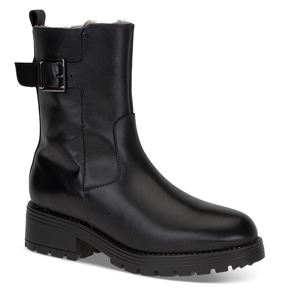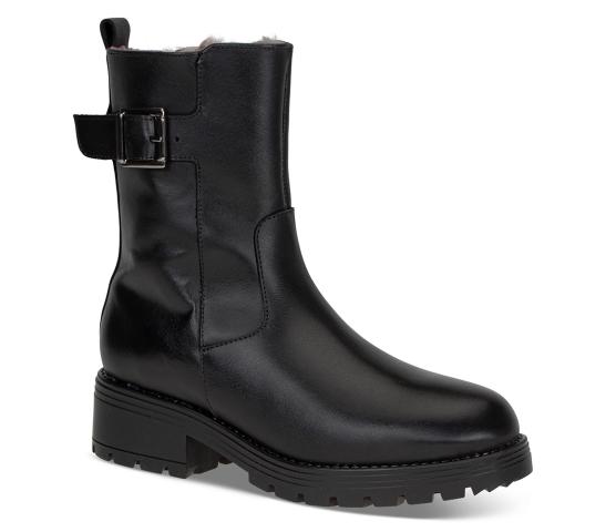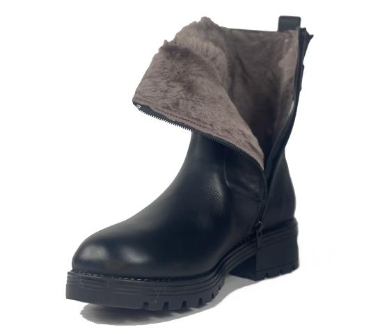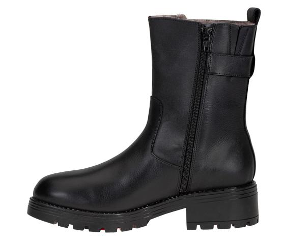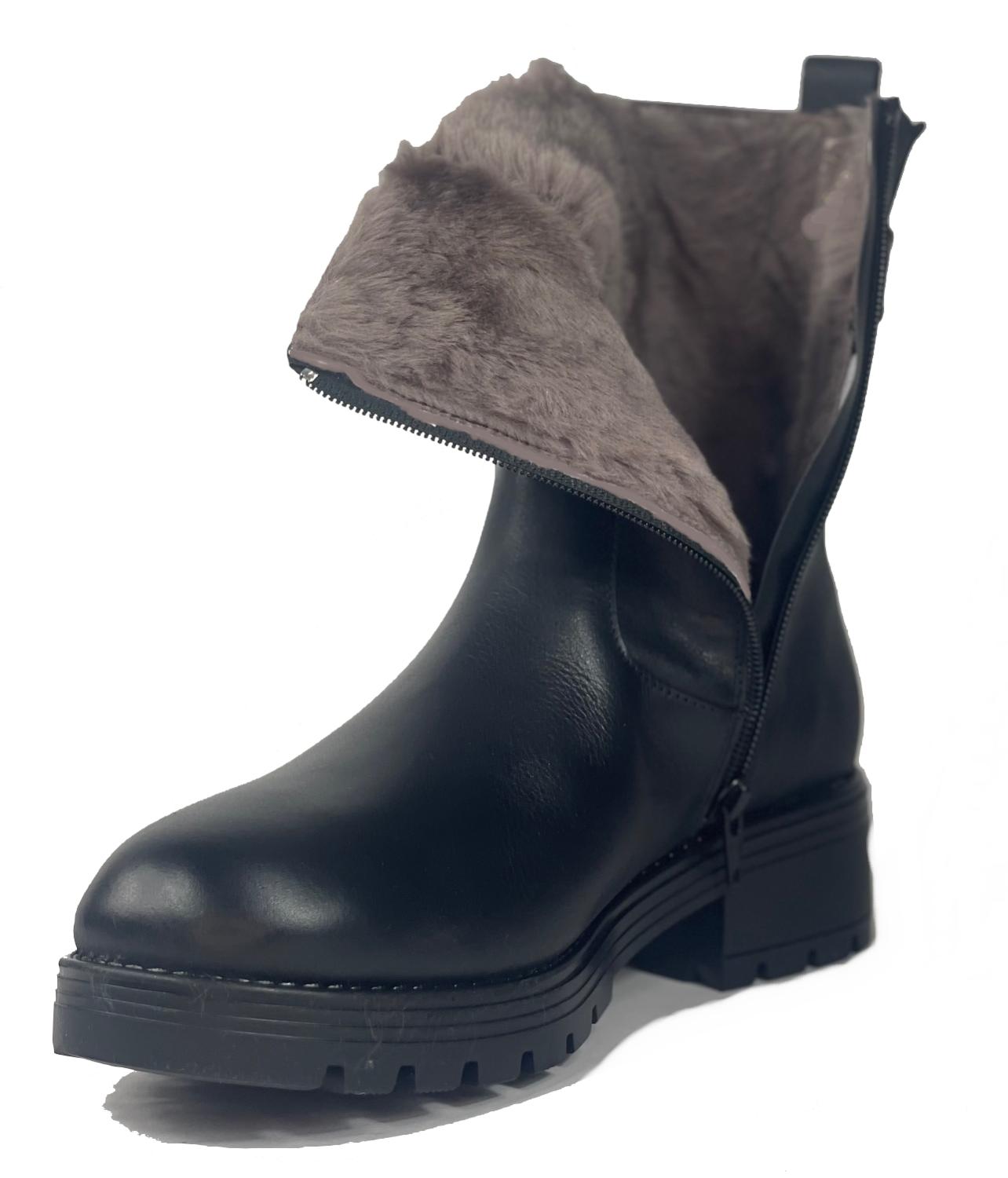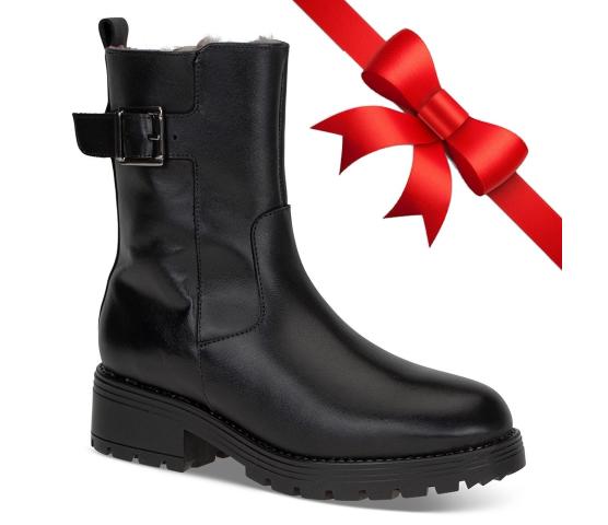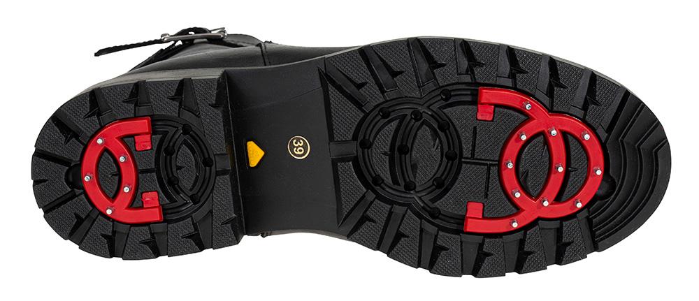 Piggsko! Denne skoletten med spennedetalje øverst er laget av vannavstøtende skinn og fôret med deilig saueskinnsfôr - perfekt til vinteren. Modellen har en gummisåle med en hæl på 5 cm. Det unike ved denne bootsen er at den har utvippbare pigger (fra Alpi, de originale) under som er perfekt til glatt vinterføre. "Nøkkel" til å vippe de ut medfølger i esken. De siste bildene viser sålen med piggene inn og ut. Luke 22. Kr. 1000 i avslag! Dette er dagens julekalender. Tilbudet gjelder frem til kl 10.00 23 desember (his vi har nok på lageret).