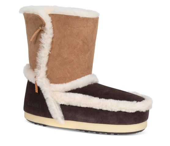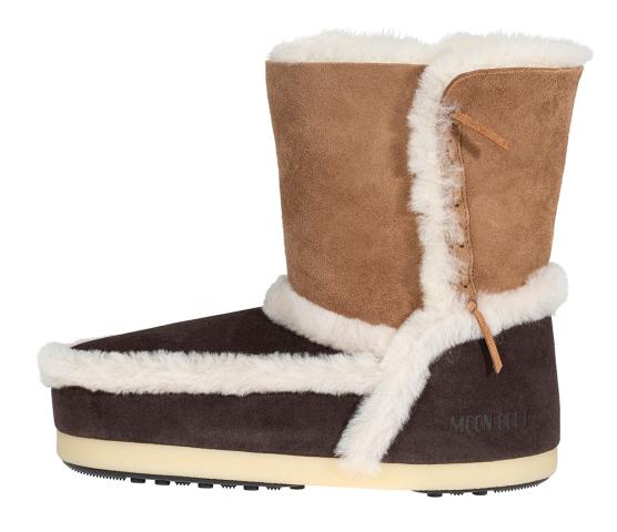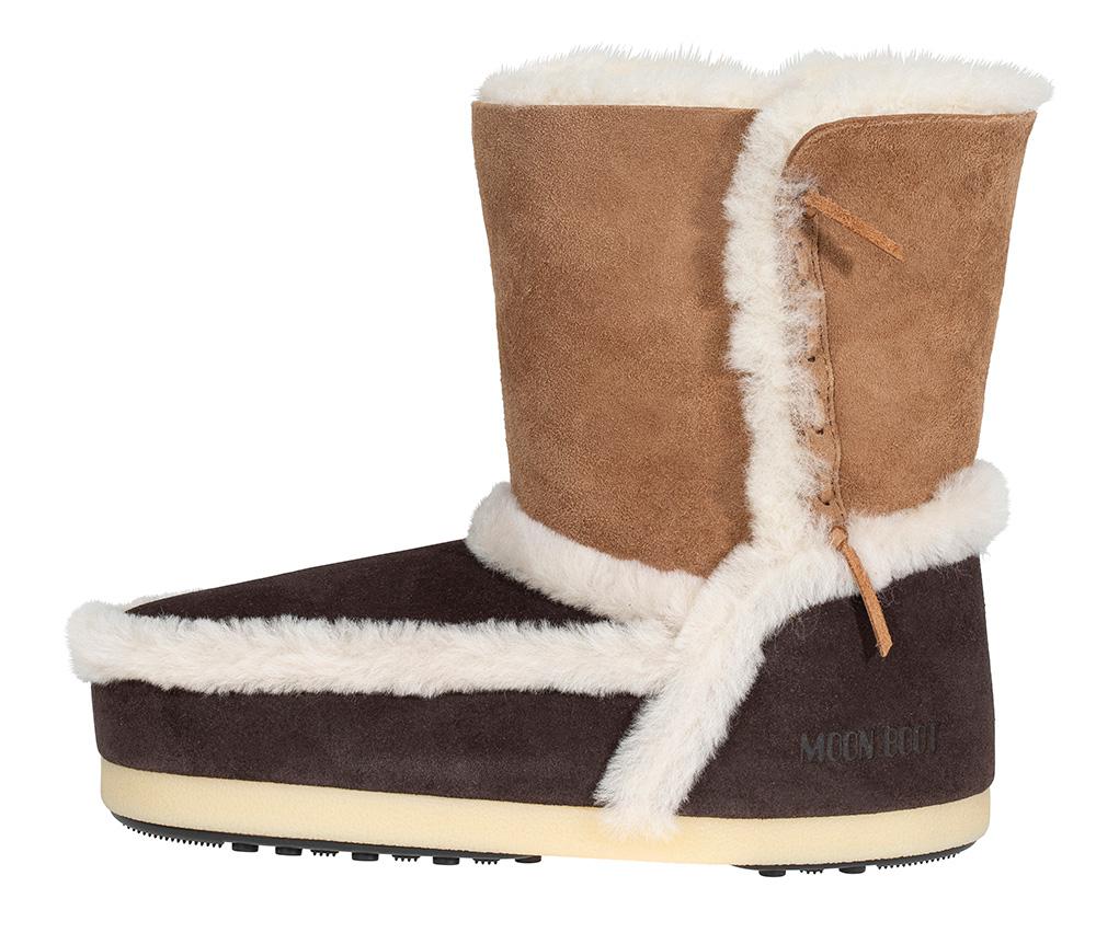 Evx Patch har paneler av semsket skinn og saueskinnsfôr både innvendig og utenpå skaftet. Mykere får du det ikke. Med lette mellomsåler og gummisåler med sugekopper for ekstra grep, holder du deg jordet på jorden og uansett hvor ditt neste oppdrag fører. Klassiske Moon Boots er en støvel for bruk på snø, kort fortalt. Den er optimalisert for varme og komfort i snø og kulde, og er ikke beregnet for daglig bruk på asfalt. OM STØRRELSER S=35-38 og M=39-41.