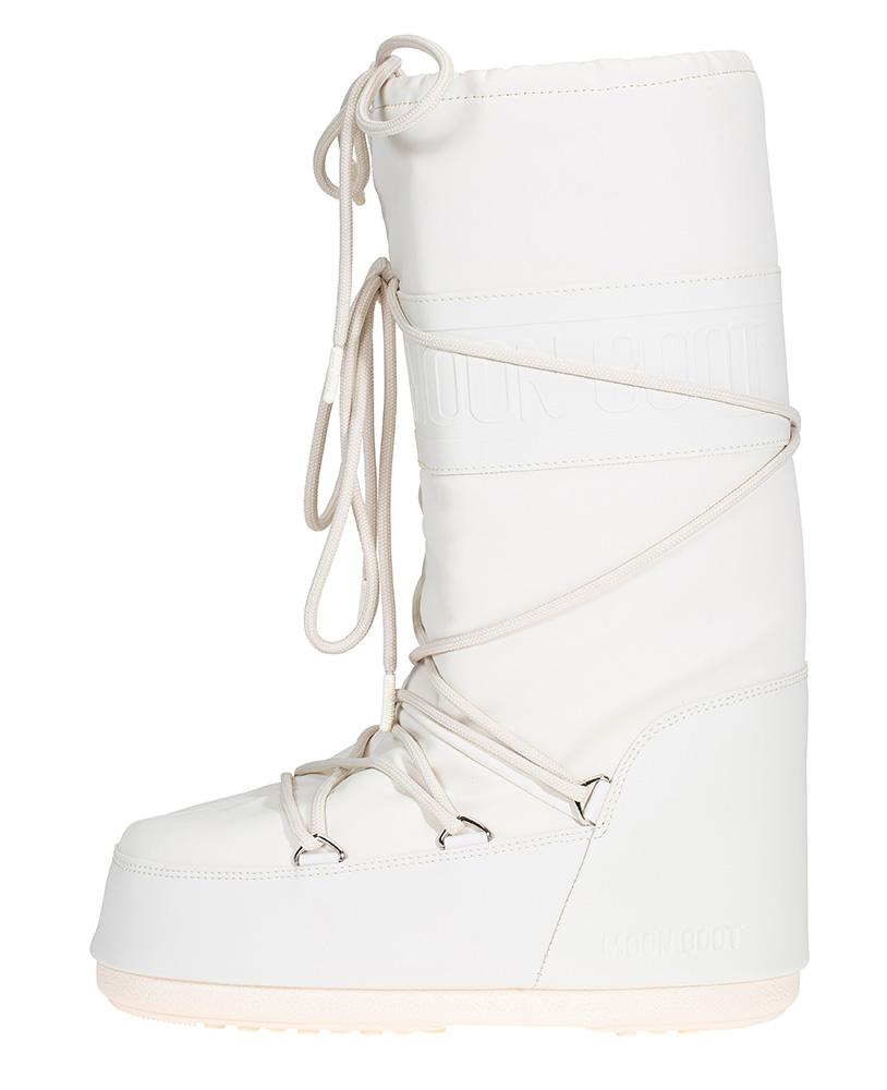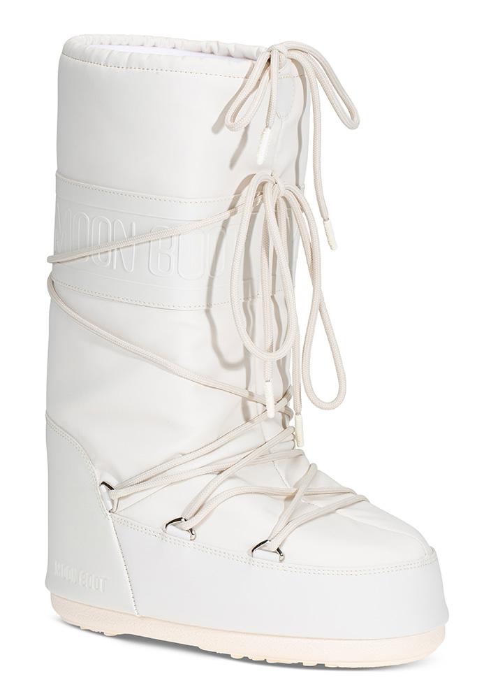 Moon Boot logo flere steder og pyntesnøring over forfot og rundt hele skaftet.