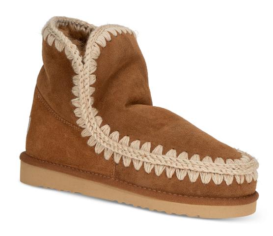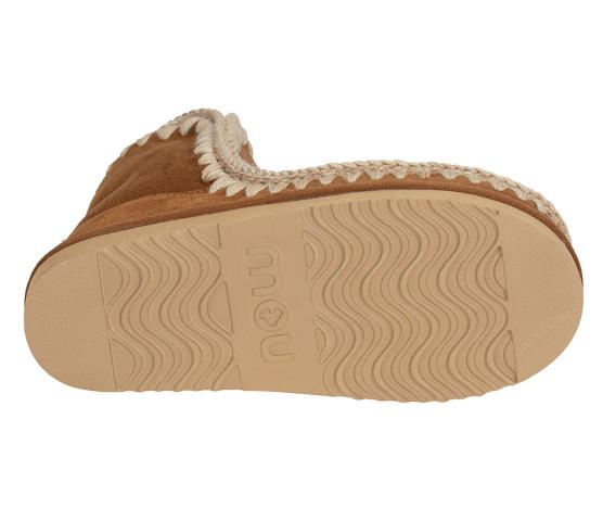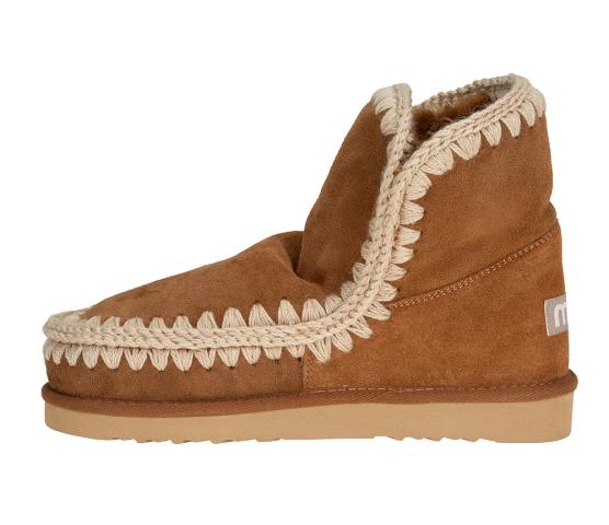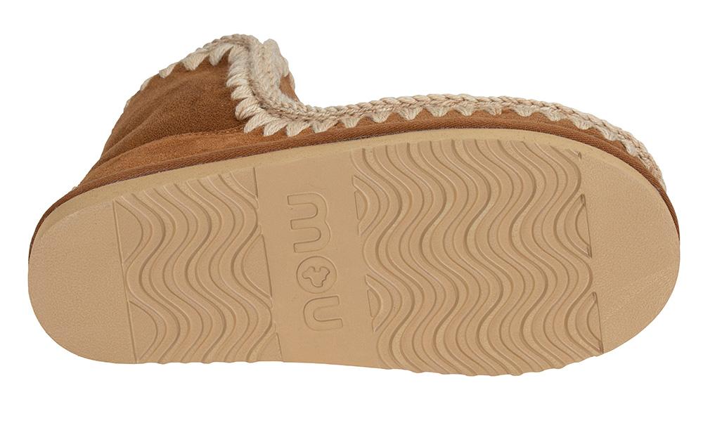 Mou sin Eskimo 18 er en søt og trendy vintersko. Modellen er håndlaget i førsteklasses dobbeltsidig saueskinn, har en støttende hælkappe og en yttersåle i EVA og gummi, noe som gjør den utrolig komfortabel og slitesterk. Mous håndheklede ullsøm tydelig på skaftet og på skoen.