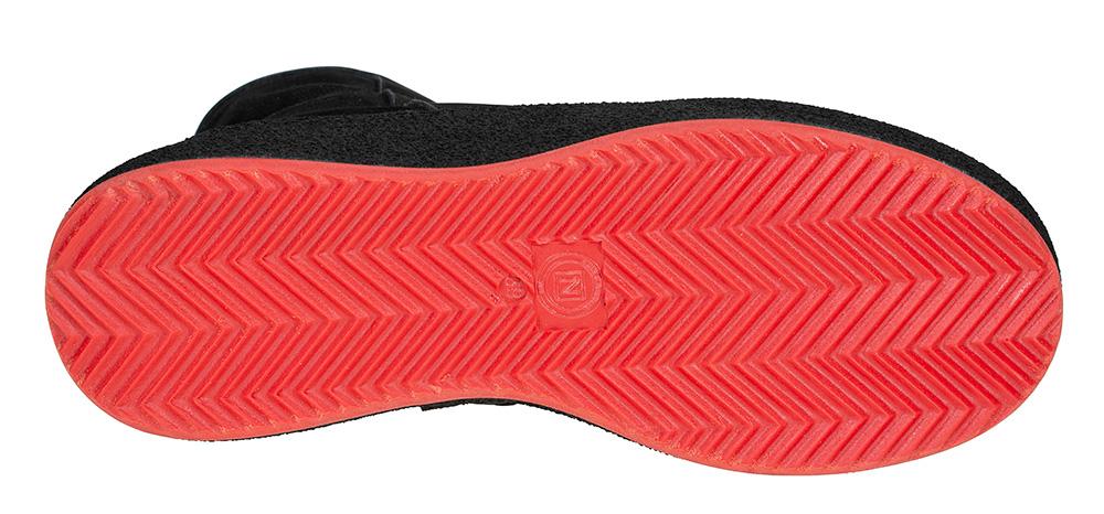 Rød såle. Mykt og deilig saueskinnsfôr. Platåsålen er dekket av ru gummi, og gjør skoletten litt røffere.