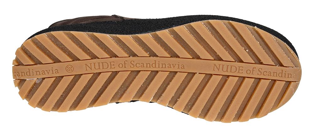 Nude sin klassiske vinterskolett har vært i kolleksjonen siden 2010. Den nyeste versjonen har vannavstøtende velourskinn med varmt fôr av saueskinn. Her med to glidelåser på siden for enkel tilpasning. Den lette polyuretansålen gir holdbarhet, komfort og naturlig isolasjon. Den har i tillegg utmerket grep. Innvendig har den god støtdemping i et ekstra skumlag i tillegg til den uttagbare, formede sålen. Yttersålen er også godt sydd til overdelen som gir ekstra god holdbarhet. En tidløs skolett til vinterbruk dette!