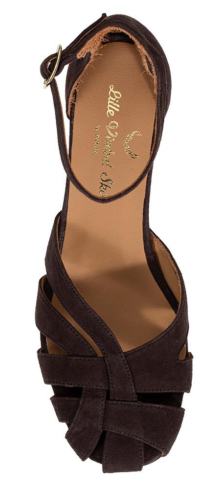 Pensko med lekker flettet front og perfekt hælhøyde for fest og moro. Laget i samarbeid med spanske KMB som vi er så glade i. Flott semsket, skinn. Hælen er også skinntrukket.