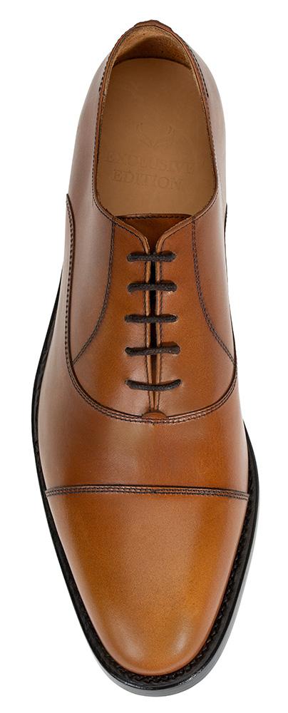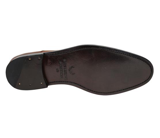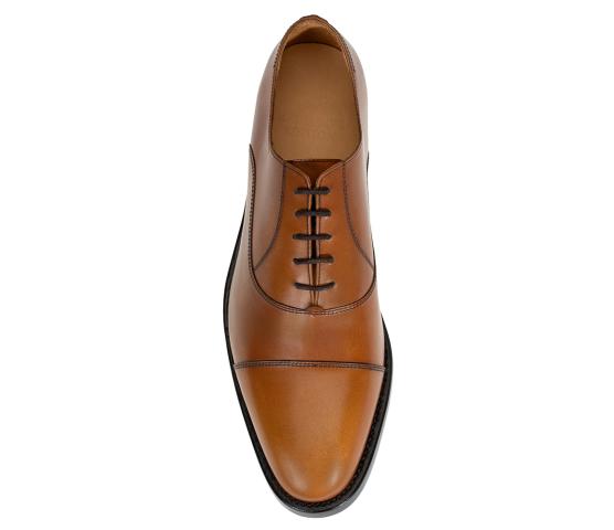 Toe cap. Lærsåle under, så vær varsom med bruk i vått vær. Tørk av med fuktig klut.