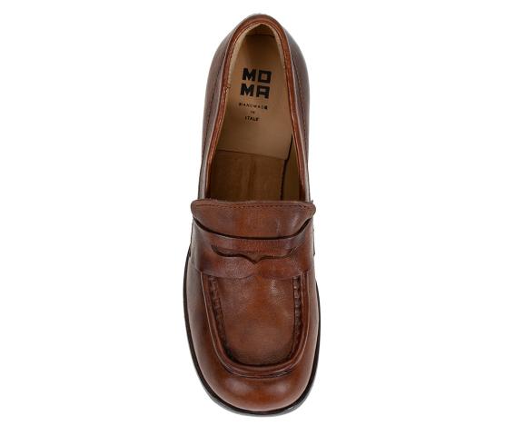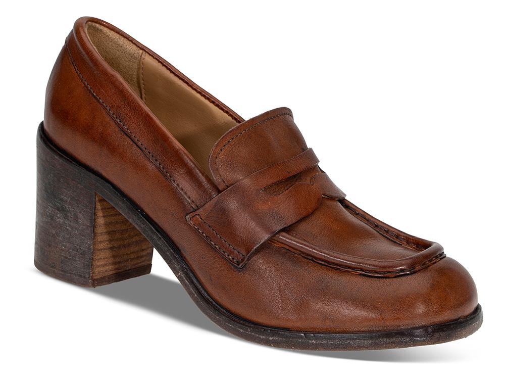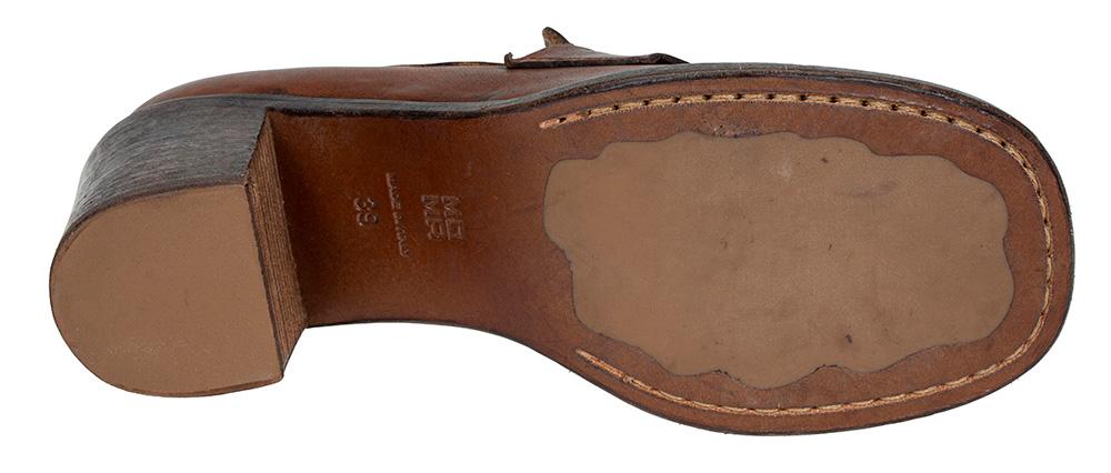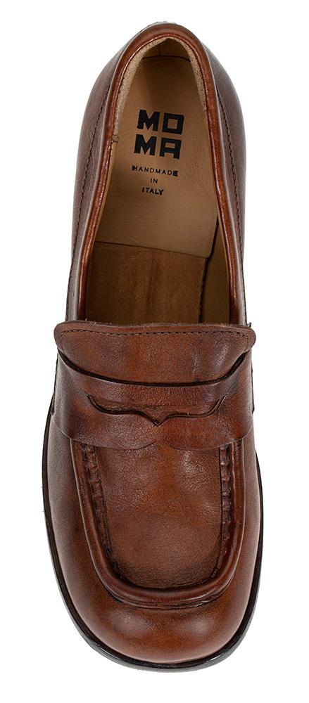 Superkule loafers med hæl fra italienske Moma. Alle Moma har et vintagepreget look - det er ofte ujevnheter i fargen og små "slitte" detaljer. Hvert par blir derfor helt unikt. NB! Modellen er stor i størrelsen, vipper du mellom to størrelser kan du velge den minste. Den kan også være litt lav over vristen.