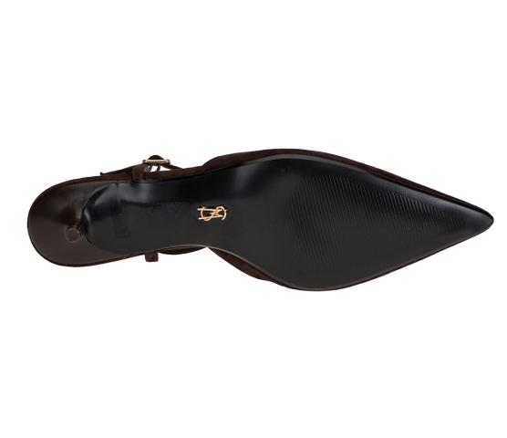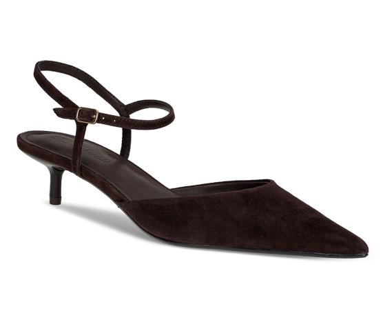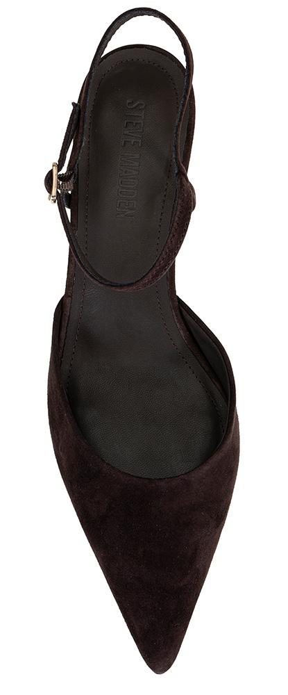 Nydelig pumps med smal ankelerem i semsket, brunt skinn fra Steve Madden. Med en hæl på 3 cm er dette en pumps du kan danse med hele kvelden!