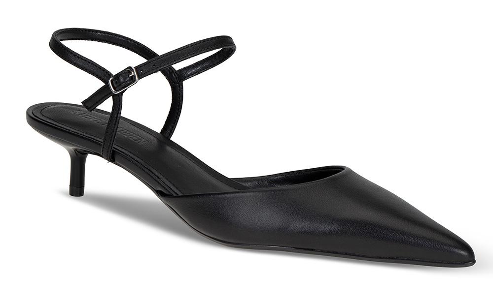 Nydelig pumps med smal ankelerem i sort skinn fra Steve Madden. Med en hæl på 3 cm er dette en pumps du kan danse med hele kvelden!