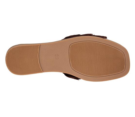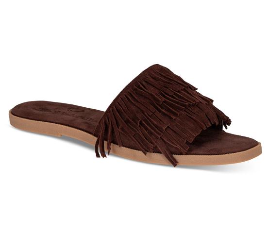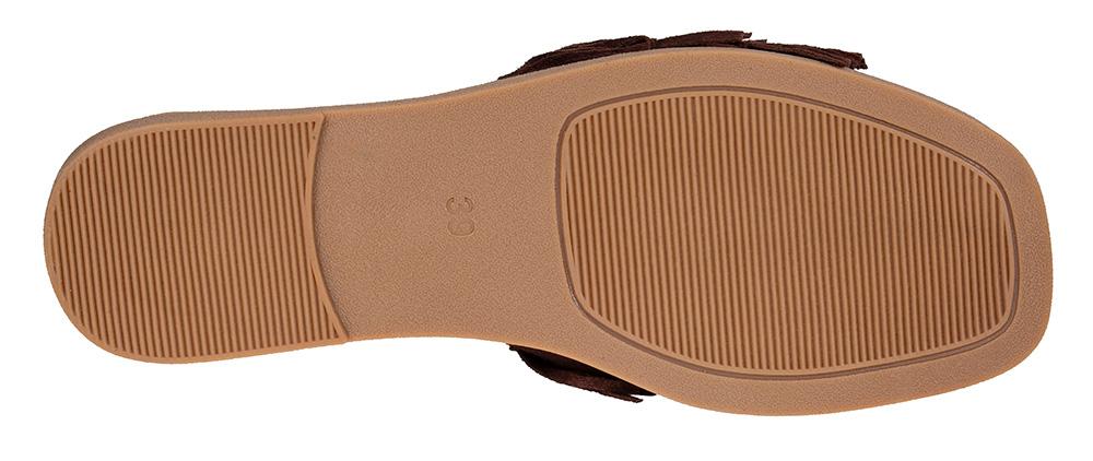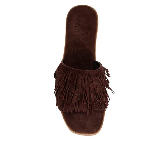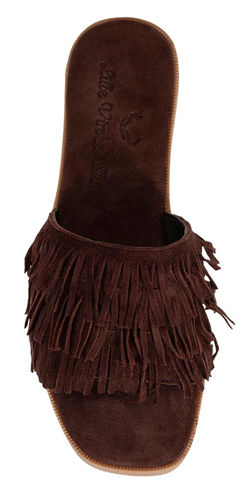 Nydelig sandal med meget myk innersåle i skinn. Frynser er in! God gummisåle har den også. Flat sandal du fint kan bruke på fest!