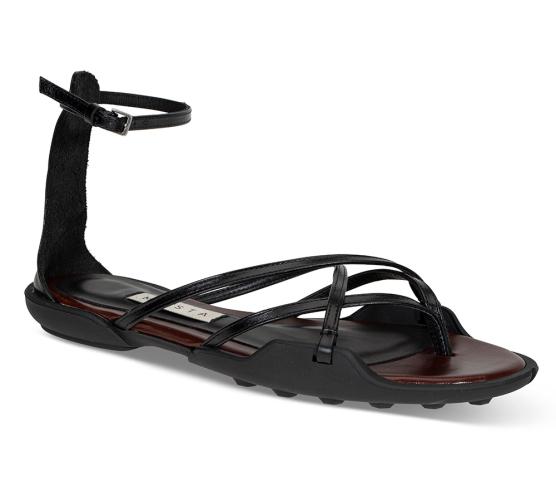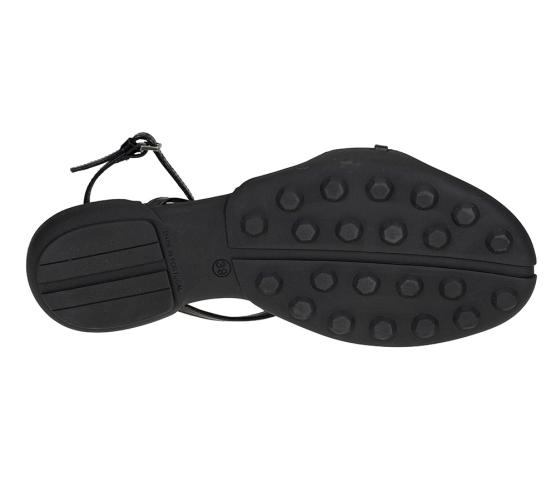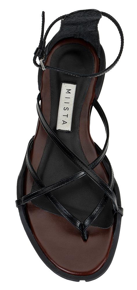 En helt spesiell sandal med sporty såle i gummi kombinert med enkle, tynne skinnremer som krysser foten. Festes rundt ankelen med en tynn rem. Sitter som et skudd på foten. NB! Litt stor i størrelsen, så vipper du mellom to numre - vipp ned.