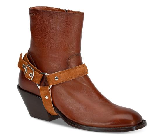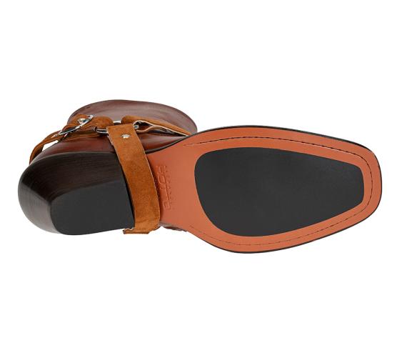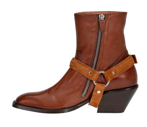 Den nydeligste skoletten fra italienske Alexander Hotto. I supermykt skinn fra innerst til yttterst. Vakker sjattering i det brune skinnet. Modellen har en cowboybootsinspirert look med den innsvingte hælen, butte tuppen og remen rundt ankelen i semsket skinn. Denne kan tas av for en cleanere look. Dette er italiensk håndverk på sitt beste - pass på dem, så har du dem i årevis!