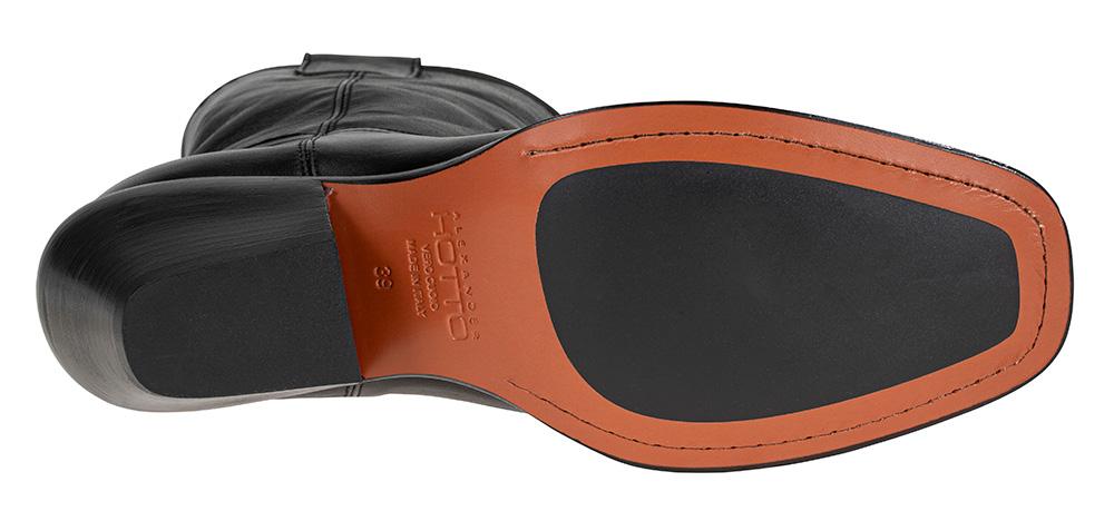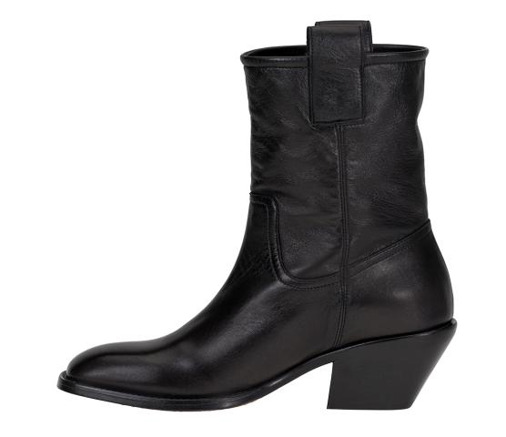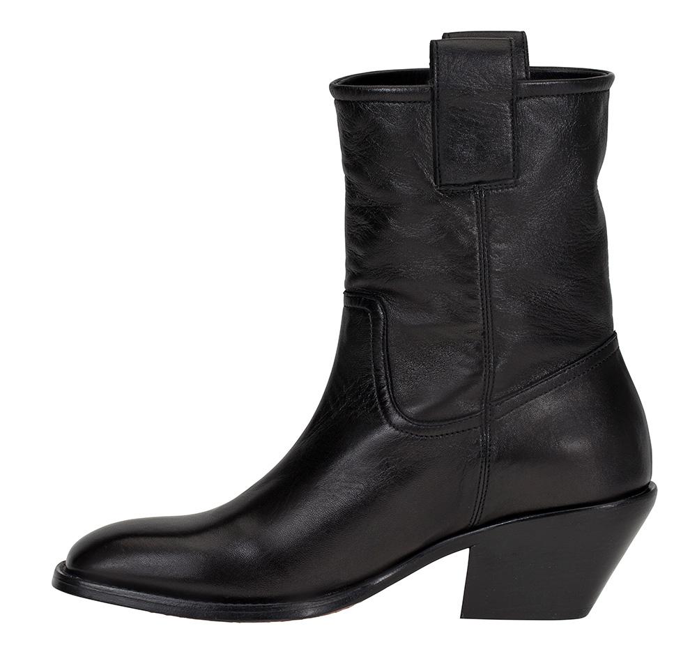En tøff, men likevel elegant boots fra Alexander Hotto. I supermykt skinn fra innerst til yttterst. Modellen har en cowboybootsinspirert look med den innsvingte hælen og den butte tuppen. Dette er italiensk håndverk på sitt beste - pass på dem, så har du dem i årevis!