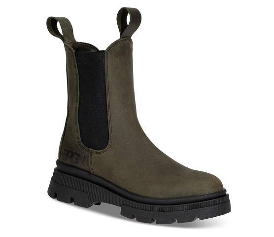 I Bergen regner det ca 270 dager i året i følge værmelderne, og det vil også bli mer "Bergen-vær" i andre deler av Europa fremover. Så her har Brgn laget en vanntett chelsea boots i skinn. Suveren såle, både demper og griper. OBS! Vanntett betyr ikke at de kan erstatte gummistøvel. Dvs står man i dypt vann, med vann over elastikken - så kan man nok bli våt;-) NB! Bildet avviker litt da sålen har fått nytt mønster. Sålen er lik den sorte chelseamodellen. Nye bilder kommer.