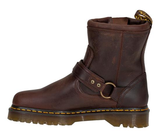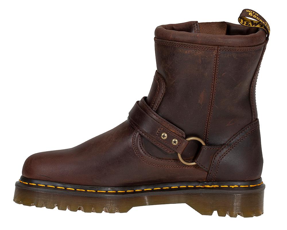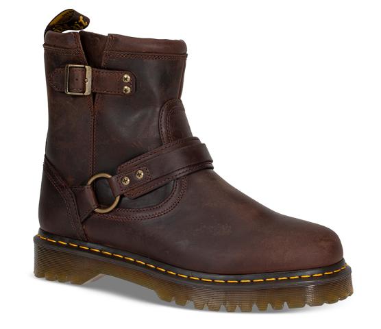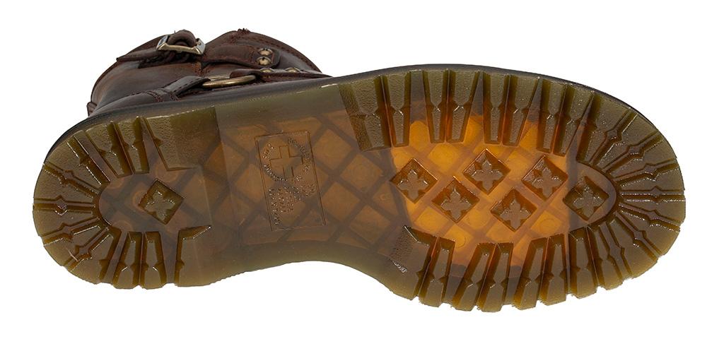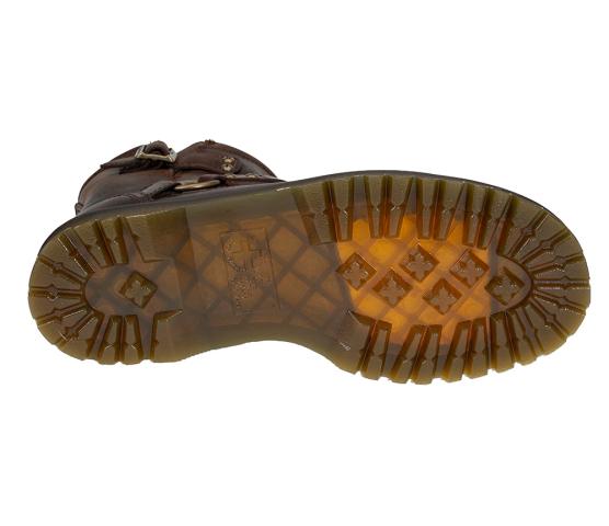 Spenn deg fast. Anistone Hi vekker oppmerksomhet – i brunt fettet skinn skinn og industrielle detaljer. Med merkede metallplater og en justerbar spenne. Den forhøyede Bex-sålen er sydd med den ikoniske gule tråden. Må ikke ha en motorsykkel, men det er ingen ulempe med disse bootsene.