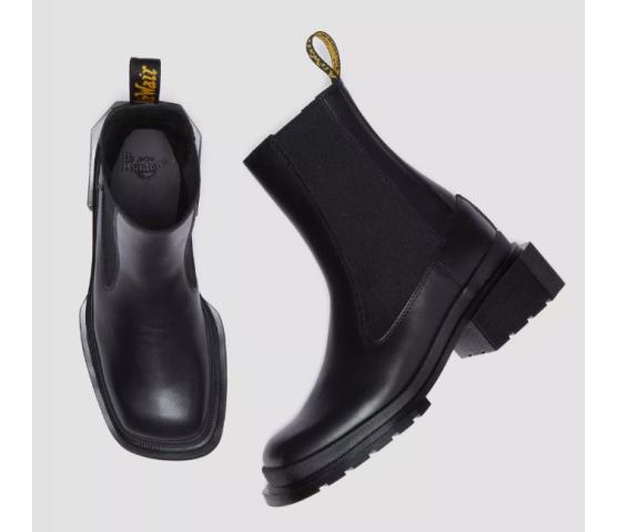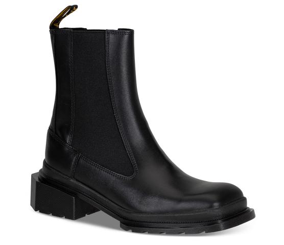 Den nye chelseabootsen Maybole har en firkantet tå! Denne fremheves og forsterkes av en kantete såle. Likevel oser det Dr.Martens av modellen! Bootsen har ekstra lange elastiske paneler for å enkelt kunne ta den av og på, og er selvsagt merket med den klassiske svarte og gule hempen.