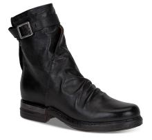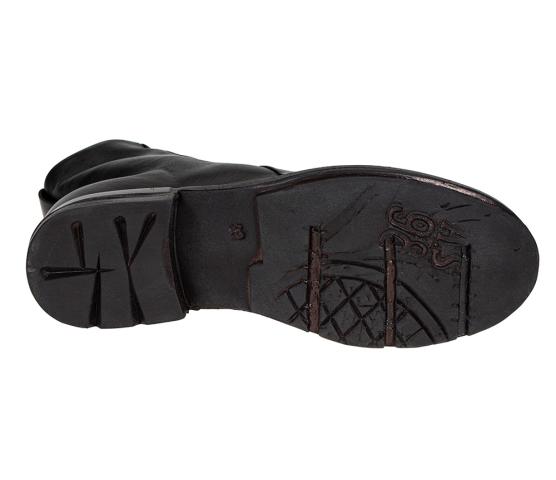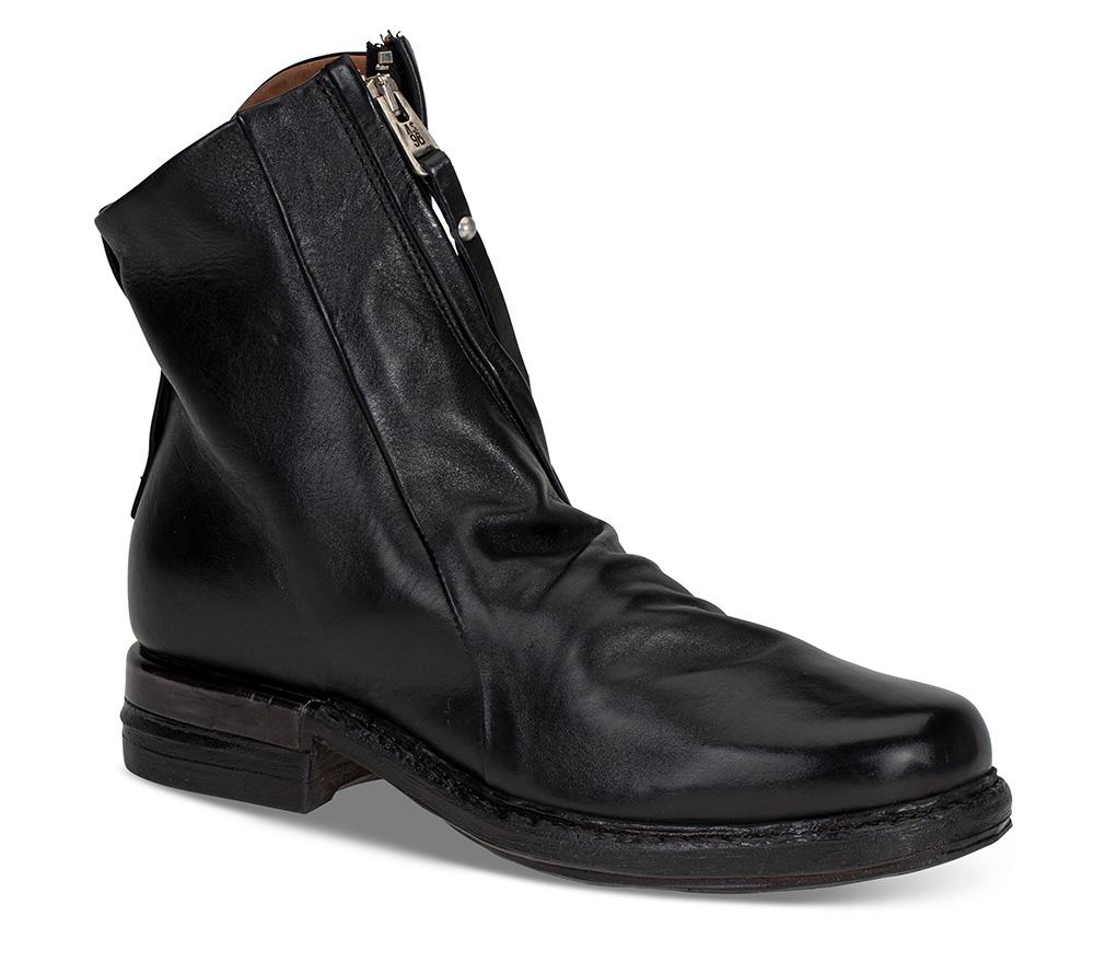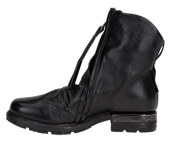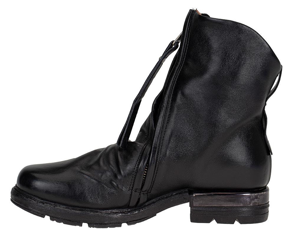 Skolett i to lag flot skinn fra A.S.98. I utgangspunktet en stilren modell, men får absolutt det lille ekstra med glidelåsen som går på skrått foran på skaftet, og rynkeeffekten over vristen. God og solid gummisåle! Diskret metalldetalj på hælen.