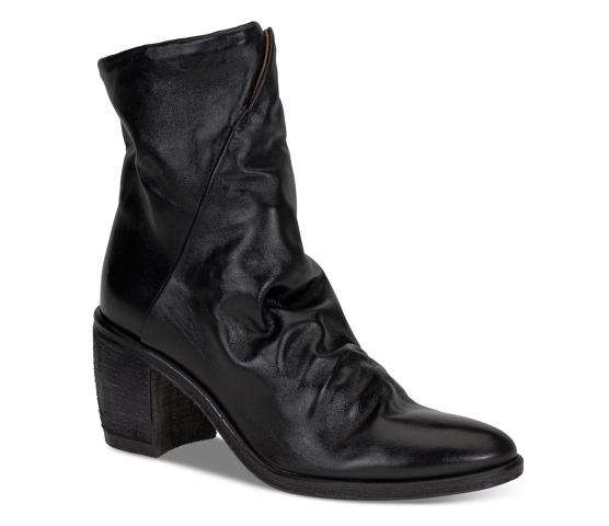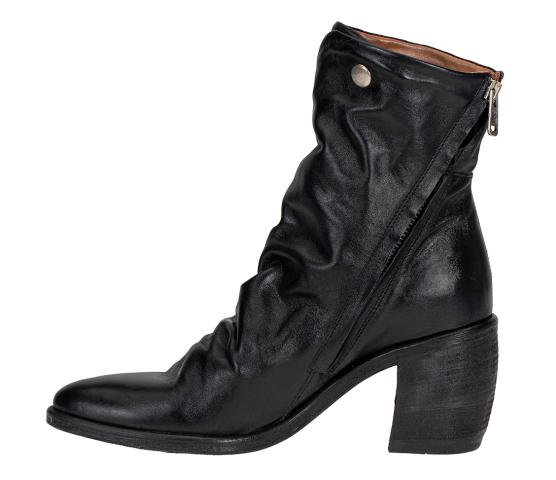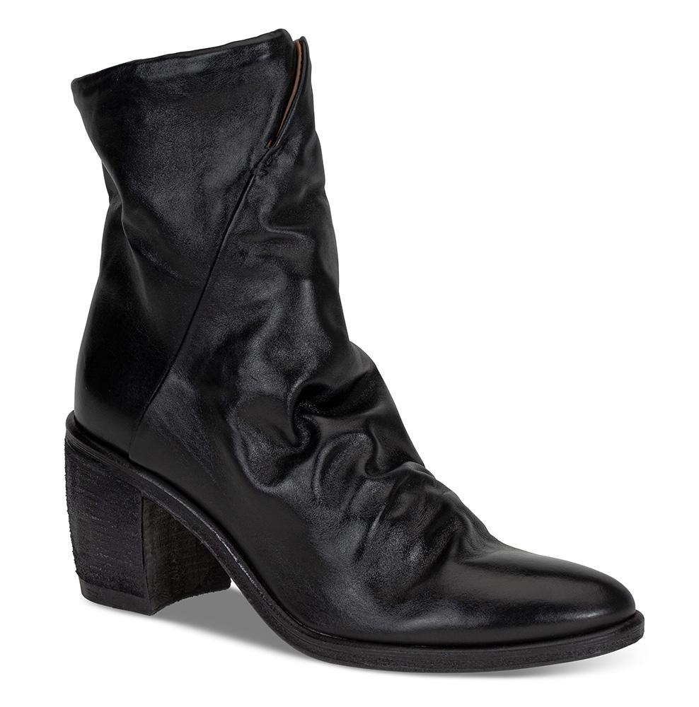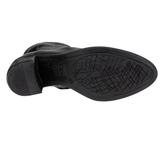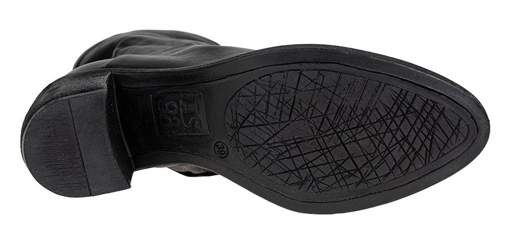 Skolett i to lag flott skinn fra A.S.98. I utgangspunktet en stilren modell, men får absolutt det lille ekstra med kraftig ståltråd øverst i skaftet og en trykknapp som kan åpnes. Skaftet kan formes og brettes ned. Uante muligheter altså med denne skoletten. Avrundet tupp og cowboyinnspirert hæl!