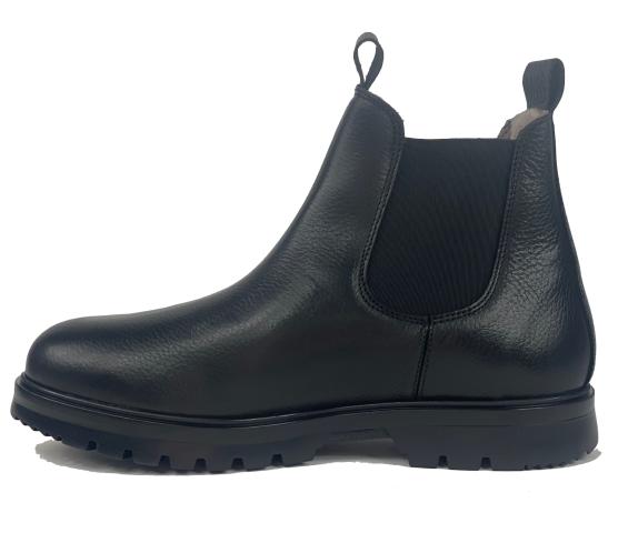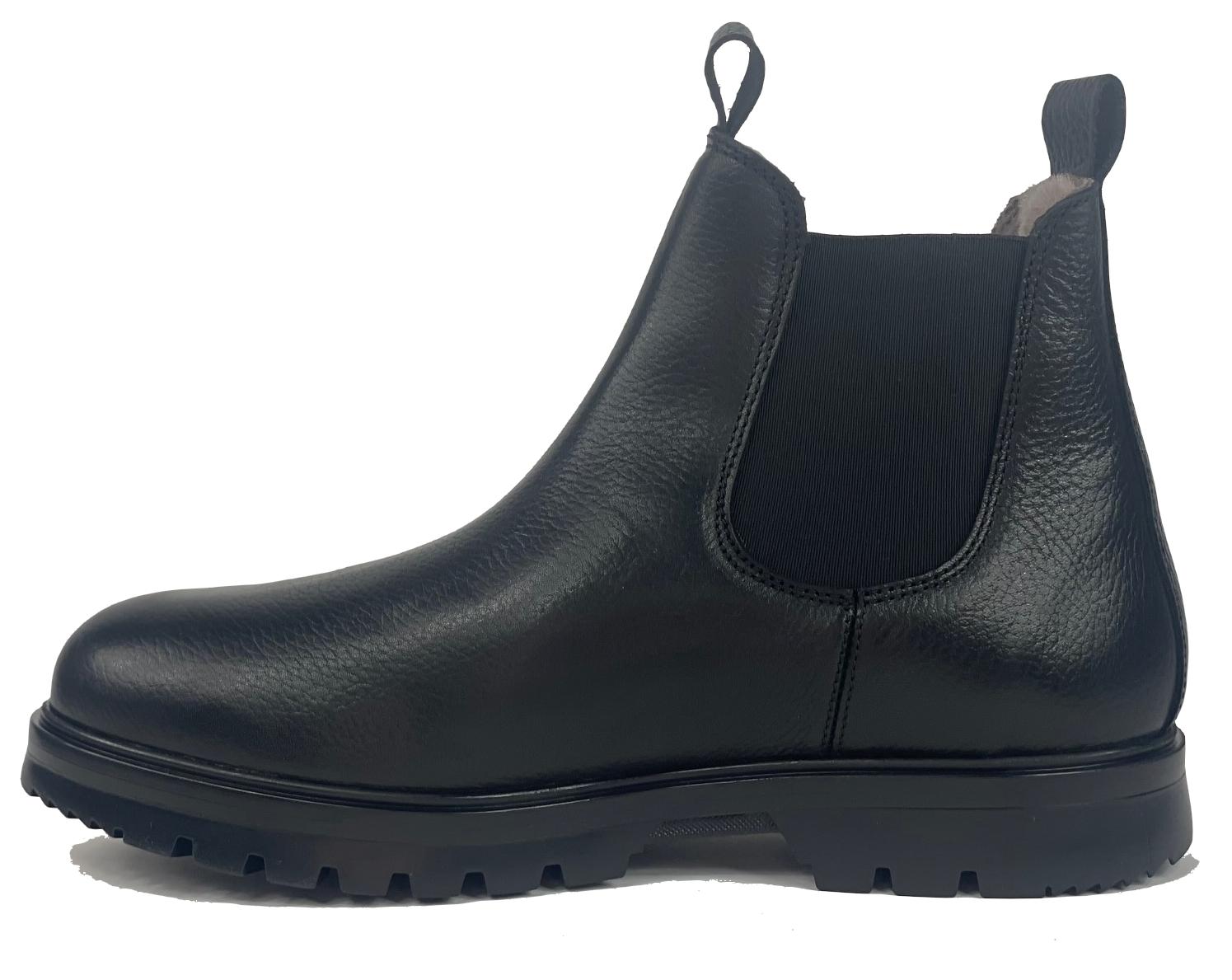 Piggsko! En klassisk chelsea laget i vannavstøtende skinn og fôret med varmt ekte saueskinn på hele innsiden. I tillegg har den utvippbare pigger under fra Alpi (de originale). Redskap til å vippe de ut medfølger i esken. Anbefaler bruk av skohorn istedenfor å dra hardt i skinnhempene.
