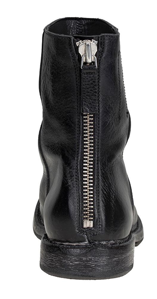 Glidelås hele veien opp bak på skaftet som avsluttes med en skinnhempe som er mest til pynt.