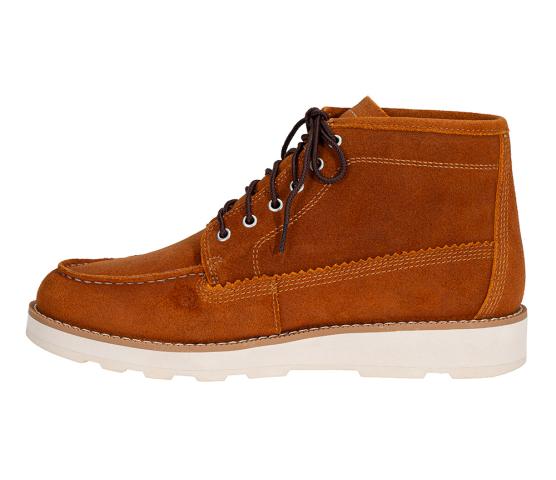 Flott boots fra Timberland i brunt, semsket skinn med mokkasinsøm på tuppen. Superlett og fin såle. Innersålen er myk og lett dempet.