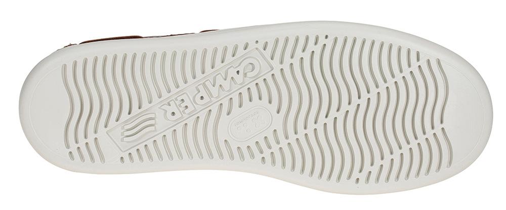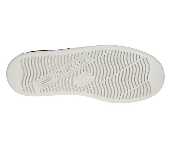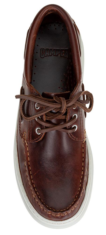 En seilerskovariant av Runner Four i brunt, kraftig skinn. Silhuetten så først dagens lys allerede tilbake i 1982 og var Campers intromodell til sportsverdenen. Den har en avslappet look, men samtidig en sporty silhuett.