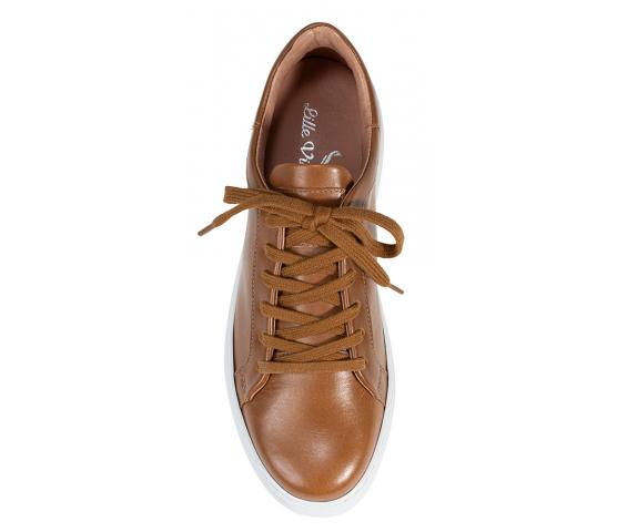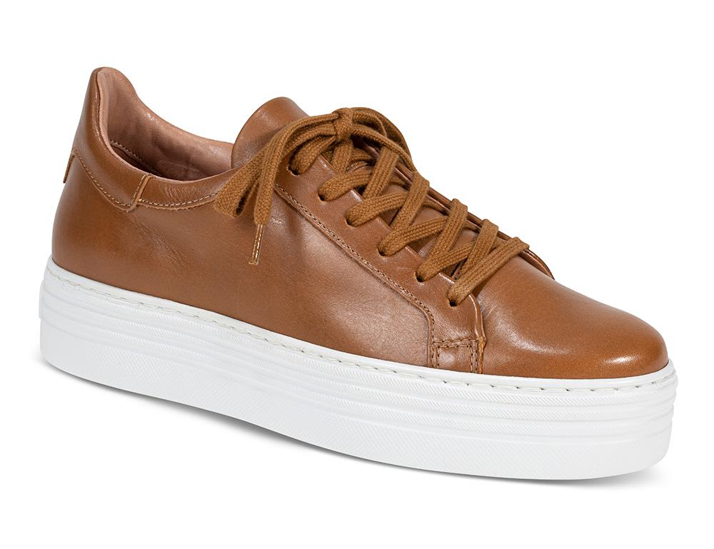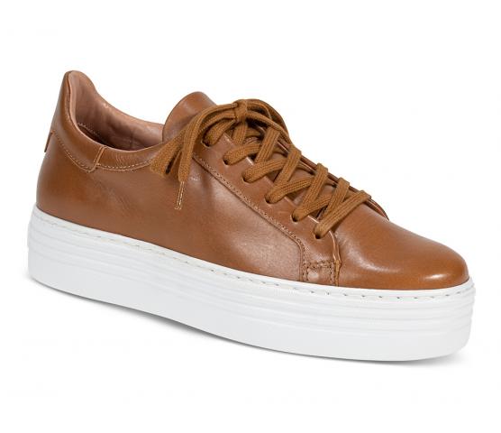 Endelig tilbake! En av våre bestselgere. Lett og trendy platåsko i glatt skinn. Skoen er fôret med mykt skinn innvendig og har en deilig dempende og oppbygget skinnsåle innvendig. Overlæret er sydd fast til sålen så disse har man lenge. Modellen er litt stor i størelsen. OBS, nye leveringen har lyst skinnfôr innvendig, ikke brunt som bildet.