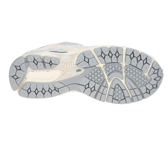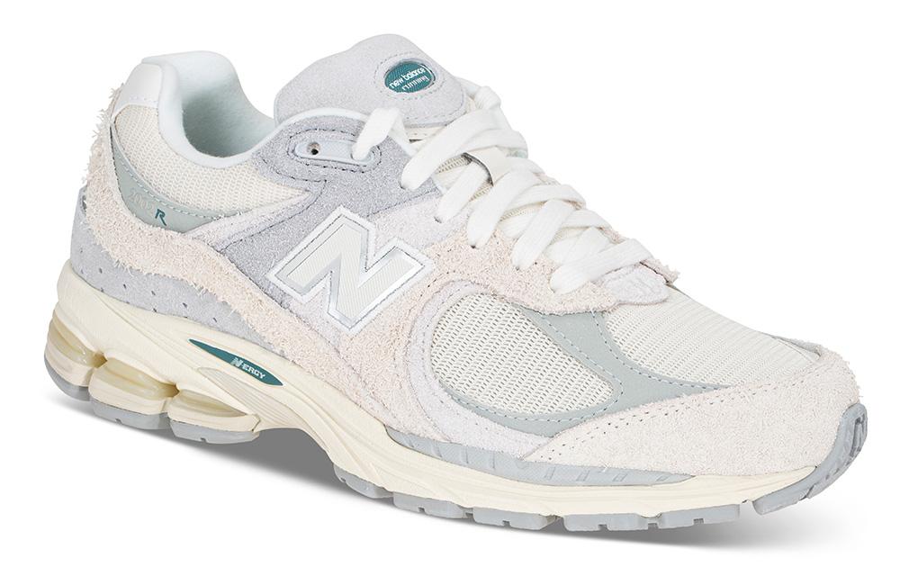En eksklusiv sneakers i litt rufsete semsket skinn som har ulike sjatteringer av grått. Tekstilen er offwhite. Modellen M2002REK har ekstra god demping og er myk fra hæl til tupp. En veldig god sko til å vandre gatelangs med i timesvis!