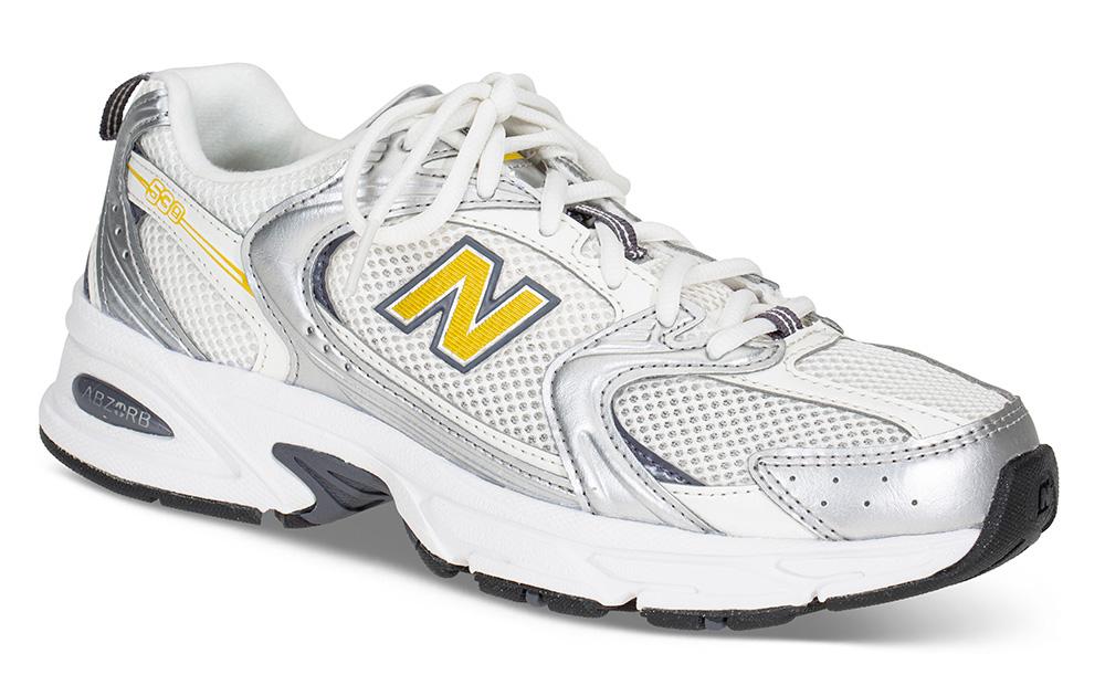 Joggesko i hvit med detaljer i sølv, grått og gult! Hyperpopulære 530 er en retrosneakers som funker like godt til kjole som til jeans! Og lyse sneakers er alltid in. Denne er normal i størrelsen.