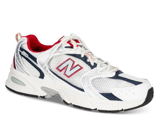 Joggesko i offwhite med detaljer i sølv, blå og rød. Populære 530 er en anvendelig sneaker som funker til det meste, og lyse sneakers er alltid in.