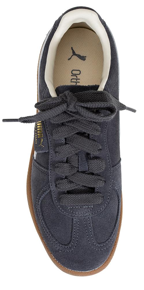 Puma logo printet på utsiden av skoen på en semsket lapp